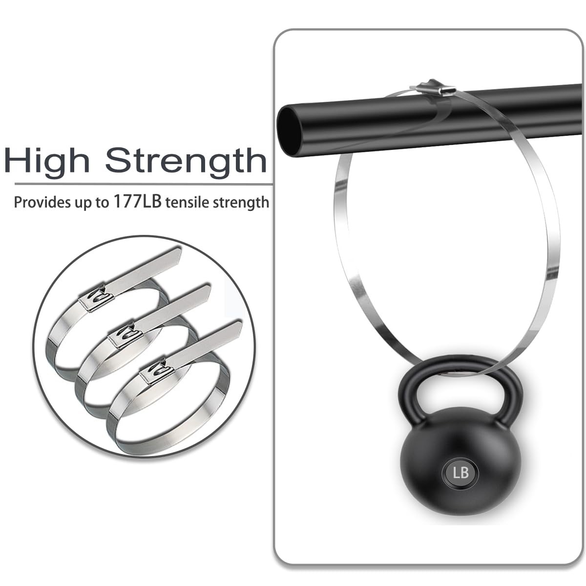 【Self-locking Design】 Our heavy duty zip ties can be easily and firmly locked. One-piece structure has consistent performance and reliability. 【High-quality Material】 The plastic ties are made of strong and soft nylon 6/6. Our wire ties are able to cope with all kinds of arduous outdoor tasks. 【High Quality】 Our zip ties are produced under top supervision to maintain the best quality. Each tie wrap is 100% inspected before being put into a separate plastic bag. 【Excellent Tensile Strength】 Our zip ties have excellent tensile strength, so you can use our cable ties without worrying about them breaking. 【Easy to Use】 Bind what you want to sort out, and then put the wrap wire into the head. With its self-locking design, you can accomplish this smoothly in seconds. 【Premium Metal Zip Ties】Our metal zip ties are made from high-quality 304 stainless steel, offering excellent corrosion resistance and durability, ensuring long-term use without aging or corrosion. 【What You Get】The package includes 400 high-quality 304 stainless steel zip ties. Each tie measures 8inches (200mm) in length and 0.18inches (4.6mm) in width, suitable for various fastening needs. Additionally, the metal zip ties can be linked together, allowing for unlimited length extension to meet your daily requirements. 【Powerful Performance】These zip ties boast a tensile strength of up to 177 lbs and can withstand temperatures ranging from -60℃ to +300℃ (-76℉ to +508℉), making them suitable for various harsh weather conditions. 【Easy to Use】Designed with an easy-to-install self-locking ball bearing head, these metal zip ties require no special tools. Simply use a pair of needle-nose pliers to tighten and cut with diagonal pliers or scissors. 【Wide Applications】Metal zip ties are perfect for securing wire fencing, chain link fences, privacy screens, fence posts, building chicken coops and pet cages, bundling cables and pipes, and modifying automotive exhaust systems. They are also an ideal alternative to plastic and aluminum zip ties, perfectly meeting your diverse needs.