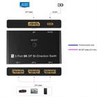 Product Description 1*8K DisplayPort Splitter 3 in 1 Out 1 in 3 out 3x1 1x3 Display Port Adapter DisplayPort 8K Two-Way DP 1.4 Switch 3 In 1 Out/1 In 3 Out Bi-Direction 8K@30Hz 4K@144Hz Splitter Converter For Multiple Source And Displays Specifications: Bandwidth: 32.4Gbps Output Resolution:1080P@60Hz/120Hz/144Hz/165Hz, 4K@60/120Hz/144Hz(DSC), 8K@30Hz Deep Color: 8bit / 10bit / 12bit Operating Temperature: -15C~55C/5°F~131°F Chroma: 4:2:0/4:2:2/4:4:4 Chassis: Aluminium alloy Shell Dimension: 79.4mm(L)x48.5mm(W)x13.0mm(H) Feature: 1. Up to 3 devices can be connected to a monitor, TV or projector. Pressthe button on the product to switch another signal to the monitor. 2. A DisplayPort device can be connected to up to 3 screens. The screenon which the signal is displayed can be selected at the pressing of abutton.(Simultaneous output to multiple screens is not possible) 3. Bi-Direction DP Switch:The DisplayPort switcher allow you to connect three DP source to one DP display or connect one DisplayPort source to toggle between three displays. (Three displays CANNOT display simultaneously, Press"Select"button to switch between three displays.) While connecting to Source or Display, you must use the usb cable to power the splitter, or your display can not show anything). Do not use too long cable(total 3m) for connection between the switcher and your devices. 4. Plug and Play: External power required, the DP selector box is easy to setup and operate. Package Contents: 1x C 1x USB 2.0 Cable(Type A to Type c) 1x User manual Note: While using, press"select"Button to switch signal between three sources or displays, the indicator lights show the working status. Three displays can not display at the same time. Shipping Returns Contact Us Payment 1. Items sent from US warehouse. 2.Receiving time = Processing time + Shipping time 3. Processing Time: Around 1-2 business Days 4. Shipping Time: 3-5 business day it may have a little delay during some holiday (such as Christmas),any problem ,please feel free to contact 1. 30 days warranty from the purchased date. Please contact us via email before returning the defective item. 2.Our warranty does not extended to any product that are physically damaged or that are not under normal operating conditions as result of misuse or improper installation on the buyer/user's part. 3.Return items should include the original packaging and all accessories. buyers MUST contact us for the returning address. 4.In all cases, buyers pay shipping fees at their own cost to return products for exchange or refund. We will be responsible for the postage of replacements. Refund will be made upon receipt of the returned item. Pls contact us if you have any problems,we will try our best to solve for you We accept all verified payment from eBay. Shipping 1. Items sent from US warehouse. 2.Receiving time = Processing time + Shipping time 3. Processing Time: Around 1-2 business Days 4. Shipping Time: 3-5 business day it may have a little delay during some holiday (such as Christmas),any problem ,please feel free to contact Returns 1. 30 days warranty from the purchased date. Please contact us via email before returning the defective item. 2.Our warranty does not extended to any product that are physically damaged or that are not under normal operating conditions as result of misuse or improper installation on the buyer/user's part. 3.Return items should include the original packaging and all accessories. buyers MUST contact us for the returning address. 4.In all cases, buyers pay shipping fees at their own cost to return products for exchange or refund. We will be responsible for the postage of replacements. Refund will be made upon receipt of the returned item. Contact Us Pls contact us if you have any problems,we will try our best to solve for you Payment We accept all verified payment from eBay. You may also like TV Remote Control Controller For Bose Solo 5 TV Soundbar System 535 AUX1 CM525 18.99 USD Storage Case Travel Carrying Bag For Bose SoundLink 3 SoundLink III Speaker 20.0 USD 4Pcs/Set Tires & Wheels Rims For Tamiya TT01 TT02 XV01 HPS HPI 1/10 RC Car aa 22.77 USD Repair LCD Screen Hinge Flex Cable For Canon PowerShot G7X Mark II G7 X II G7X2 12.75 USD Echo Recoil Starter Assembly A051001312 A051001311 Pe-225 Srm-255 Pas-255 17.84 USD 1.99 USD Portable Adjustable Stainless Handheld Can Opener Jar Bottle Lid Remover Tool 9.99 USD powered by