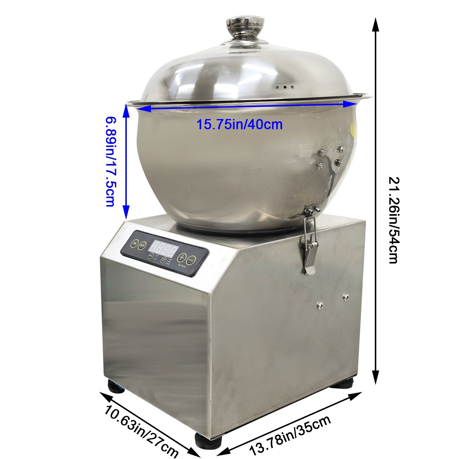 Techtongda®8KG Stainless Steel Dough Mixer with Heating Function, 750W Electric Flour Kneading Machine, Detachable Bowl, Forward/Reverse, 110V, for Baking, Food Blender The stainless steel detachable basin type dough mixer is a special device for dough mixing, stuffing stirring and other operation, can simulate the manual dough mixing process, has a high mixing capacity of 8KG, improves the dough mixing efficiency.The machine also has a heating function, and the dough can be placed inside to wait for the dough to ferment.It can be widely applied to the industries of food, catering, service and so on. Parameters Model Detachable type basin Voltage 110V Power 750W Maximum Capacity 8 KG (the total weight of flour and water) Maximum Timing Duration 30min Rotation Mode Forward and reverse rotation Product Size 10.63''x13.78''x21.26'' (27x35x54cm) Features The high-definition LED screen can display numerical values clearly and visibly, the user can set the mixing time according to different demands, and the dough mixing process can be controlled in real time. The visible glass cover is designed for observing the mixing effect conveniently, is attractive in design, unique in structure and convenient to use, and can be well combined with the basin body in the working process. The stainless steel basin adopts forward and reverse rotation bi-directional design, the largest capacity is 8KG (including flour and water), it simulates the manual dough mixing process, and dough is taken and placed more conveniently. The dough mixer has a 30min super-long timing function, the user can press the independent buttons to set the timing duration, and the dough mixer can well meet different demands of customers for mixing flour, stuffing and other materials. Note: Do not directly change the rotational direction mode. The user needs to suspend the machine and then can change the rotational direction mode. The detachable auger is installed in the basin and used for evenly mixing dough and stuffing, and the transverse and longitudinal baffles are designed for preventing the dough from idling along with the auger, so that the dough mixing effect is effectively enhanced. Double buckles are used for combining and separating the basin and the machine body, the basin can be easily installed and fixed firmly and stably, the basin cannot shake in the working process, and the dough mixing operation can be conducted more stably. The machine also has a heating function, and the dough can be placed inside to wait for the dough to ferment. There are three temperature adjustment modes that can be set according to your needs. Attention 1. Before starting the machine, turn on the power and conduct an operation test to check whether all parts of the machine are normal. 2. Check whether the buckle of the auger is fixed. 3. Machine maintenance: After use, take down the auger and basin for cleaning. Wash and dry these accessories. 4. Do not stretch hands into the mixer when it is working. Please close the cover when the machine is working. 5. Please check whether the sealing ring is damaged before use. If it is damaged, please replace it in time. 6. It is strictly prohibited to install the tool holder safety pin backwards. Operation Method 1. Unpack the machine and check whether all accessories are available. 2. Assemble the accessories and the machine body. 3. Pour the appropriate amount of flour and water into the mixing basin. 4. Connect the machine to the 110V power supply, set the mixing time and select the rotating mode as needed. 5. Turn on the power switch and start to mix the flour and water. 6. After the mixing time is up, open the cover and take out the dough. Disassembling Process of Auger The auger can be taken down and cleaned easily and conveniently. Please disassemble it according to the following picture. Application The stainless steel detachable basin type dough mixer is suitable for different industries and fields can be used to mix flour, minced meat, stuffing, salad, butter and so on, and can be widely used in dumpling restaurants, cake shops, breakfast stores, noodle restaurants and the like. Product Display Item #17TOP0218 8KG Stainless Dough Mixer with Heating Function,110V Electric Flour Kneading Machine ▲ Default shipping cost or free shipping service is only for the customers from Canada or the lower 48 United States by Canada Post, USPS or the UPS Ground. Customers from other areas or needs other shipping ways, please contact us. ▲ Buyers from Guam, Puerto Rico, Virgin Islands, American Samoa, Alaska, Hawaii, PO Boxes, APO/FPO addresses or other countries/areas, there WILL be extra shipping costs, please contact us for more detailed information. ▲ Please make sure your address is valid for both UPS and USPS services. Any costs incurred because of incorrect or undeliverable address should be undertaken by buyer. Handling Time: Shipping is usually made in 1-3 business days after payments cleared. Orders are processed from Monday-Friday; Not on the weekends & public holidays. Sales tax / Customs duties: Any sales taxes or Customs duties are not included. If came out, they must be undertaken by the buyer. Damage In Shipping: Email or call us First! We will work with you to get the case resolved in the fastest method. Return / Refund If you are not 100% happy with your purchase, please contact Us. Please don't directly opened a request or case without informing us, or else, we will do some discounts on the warranty and other sales-services later on. Hope for your understanding. Returns & Exchanges ▲ All returns must be made within 14 days of delivery date. Items must be in new, unused condition, with all original materials included with the shipment. A partial refund may be applied for opened or damaged items, depending on the condition. ▲ Items returned under the buyer’s remorse: The return shipping fee must be covered by the buyer; The original shipping cost will also be deducted from the refu