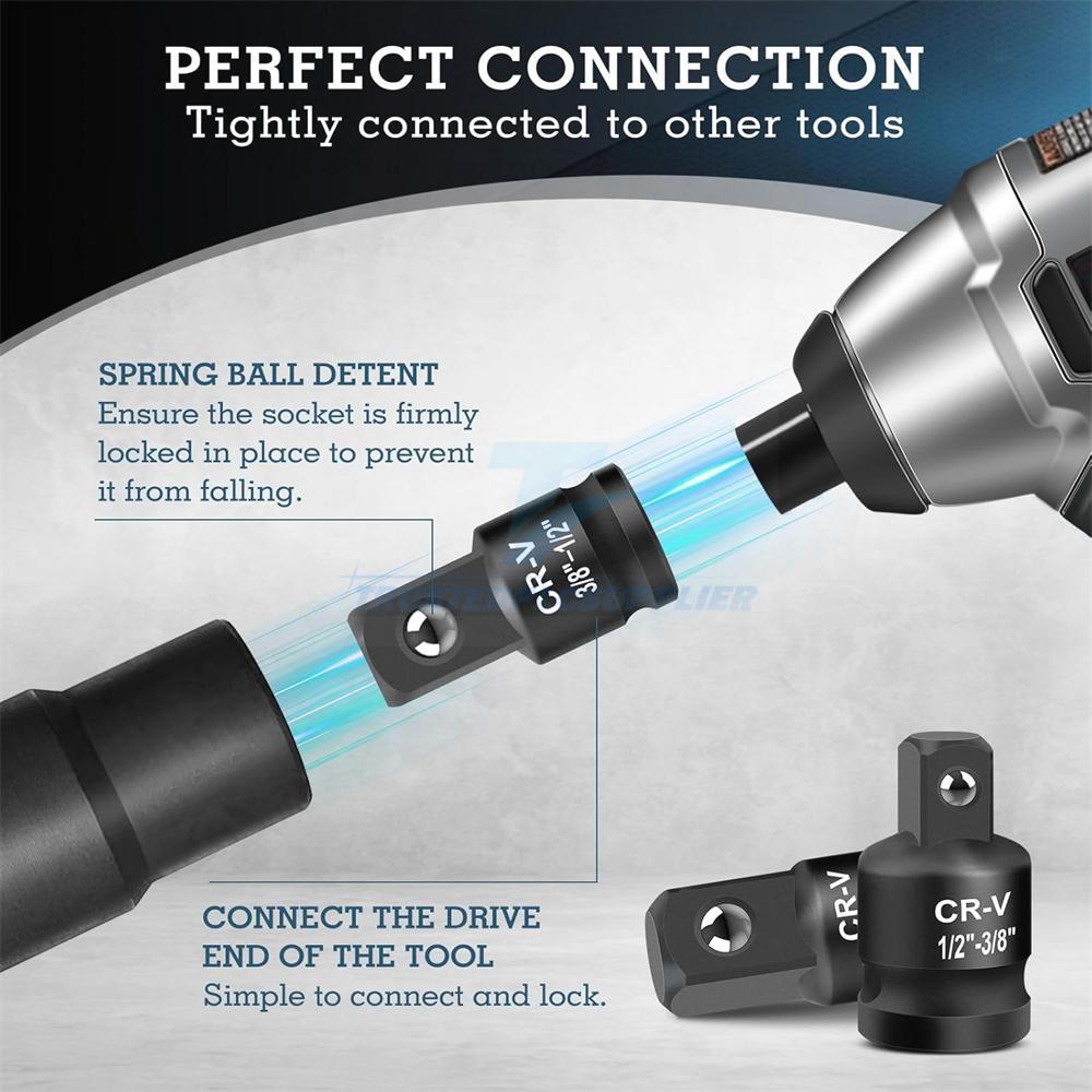 Product Description 8PCS 3/8" to 1/4" 1/2 inch Drive Ratchet SOCKET ADAPTER REDUCER Air Impact Set Features: 1, High quality 8 pieces socket convertor adaptor set 2, Manufactured from chrome-molybdenum steel with heat treated for extra strength and durability 3, Each socket has its size imprinted on the socket itself, making it easy to identify them after you've removed a handful from the case 4, Comes with a plastic case for easy storage and transportation, convenient to use 5, Hardened and tempered, professional tool for commercial or occasional use Specifications: 【DRIVE BIT ADAPTER】: 8 Piece set includes 3/8" to 1/4" reducer, 1/2" to 3/8" reducer, 3/4" to 1/2" reducer, 1" to 3/4" reducer, 1/4" to 3/8" adapter, 3/8" to 1/2" adapter, 1/2" to 3/4" adapter, 3/4" to 1" adapter to give you all the sizes you need to smoothly transition from socket to socket. 【Resistant】: This Impact Socket Adapter is made of high-quality Chrome Molybdenum Alloy Steel, so it has high hardness and can be used under various working conditions for a long time without damage. 【WIDE APPLICABILITY】:Impact drive socket adapter Set, specially designed for drivers, wrenches and ratchets. If you are a car or factory maintenance person, the wrench adapter is easy to convert, and has strong compatibility, which can compatible with air tools, power tools or drive tools. 【QUALITY】: Although most of the socket reducers on the market are easy to rust and corrode, our socket reducer adopts phosphating treatment on its surface, which can ensure that it is not easy to rust in long-term use. 【DESIGN】: Each socket adapter is equipped with a built-in spring-loaded stop ball that locks securely into the socket to better prevent them from falling out and has a torque function. Package: 1 x 3/8 to 1/4 Reducer 1 x 1/2 to 3/8 Reducer 1 x 3/4 to 1/2 Reducer 1 x 1 to 3/4 Reducer 1 x 1/4 to 3/8 Adapter 1 x 3/8 to 1/2 Adapter 1 x 1/2 to 3/4 Adapter 1 x 3/4 to 1 Adapter 1 x Storage Case About Us Payment Shipping Returns Contact Us 1. Unless specified otherwise, all our products are IN STOCK and are shipped from USA Local warehouse - Not Overseas! 2. We provide a 30 day Satisfaction Guarantee or your money back (provided items are in the same new and resaleable condition.) 3. We have a PayPal Verified Business Account, please buy with Confidence! 4. Every item will be tesrted before send.We know our products well and if we don't have the answers we will do our best to find them for you! 5. Our friendly team look forward to serving you! Your satisfaction is our No.1 Priority We will do our best to satisfacy you. 1.Paypal, Credit Card, G Pay etc, many payment way is accepted. 2.Please be sure your shipping address is correct before make a payment. 1.We will ship out the item within 1-3 business days after comfirming the payment, appreciate your patience. 2.If the items are broken on the way(we will check the orders clearly before we sent them),please contact us in 3 days you received it. We will send you a new one or refund your payment. 1.We stand behind every buyer.Items can be returned for exchange or refund within 30 days. 2.Please contact us when you have any confusion of our item, we will solve the trouble for you as soon as possible. 1.This is professional Seller.We will reply your message within 24 hours. 2.Please contact us whenever you have any question about the item. We will deal with it as soon as possible. 3. If you are unhappy with the item or our service,please Contact Us before leave feedback,just give me a chance,thank you! About Us 1. Unless specified otherwise, all our products are IN STOCK and are shipped from USA Local warehouse - Not Overseas! 2. We provide a 30 day Satisfaction Guarantee or your money back (provided items are in the same new and resaleable condition.) 3. We have a PayPal Verified Business Account, please buy with Confidence! 4. Every item will be tesrted before send.We know our products well and if we don't have the answers we will do our best to find them for you! 5. Our friendly team look forward to serving you! Your satisfaction is our No.1 Priority We will do our best to satisfacy you. Payment 1.Paypal, Credit Card, G Pay etc, many payment way is accepted. 2.Please be sure your shipping address is correct before make a payment. Shipping 1.We will ship out the item within 1-3 business days after comfirming the payment, appreciate your patience. 2.If the items are broken on the way(we will check the orders clearly before we sent them),please contact us in 3 days you received it. We will send you a new one or refund your payment. Returns 1.We stand behind every buyer.Items can be returned for exchange or refund within 30 days. 2.Please contact us when you have any confusion of our item, we will solve the trouble for you as soon as possible. Contact Us 1.This is professional Seller.We will reply your message within 24 hours. 2.Please contact us whenever you have any question about the item. We will deal with it as soon as possible. 3. If you are unhappy with the item or our service,please Contact Us before leave feedback,just give me a chance,thank you! You may also like 65W USB C Type C for Acer Chromebook Lenovo/HP/Asus/Samsung Power Laptop Charger 8.99 USD Free shipping Titanium Cutting Board Double-Sided Titanium Cutting Boards for Kitchen Camping 17.99 USD 22.59 USD Free shipping 20% off 9PC ABS Socket Organizer 1/2 3/8 1/4 inch Drive Socket Rail Holders Wall Mount 17.57 USD 18.49 USD Free shipping 5% off 5Pcs HSS Cobalt Hole Large Metal Step Drill Bit Set Titanium Cutter Cone 50 Size 9.69 USD 11.49 USD Free shipping 16% off 3 Head 50000LM LED Solar Lights Outdoor Waterproof Motion Sensor Security Lamp 13.99 USD Free shipping 8"x12" Vacuum Sealer Bags Embossed Food Saver Magic Seal Storage 100-500pcs 14.89 USD Free shipping powered by