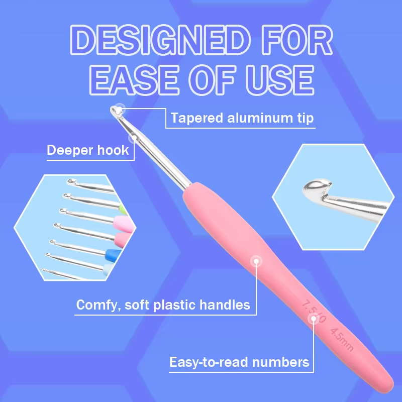 Ergonomic Crochet Hook Set for Beginners – Colorful Yarn Knitting Needles