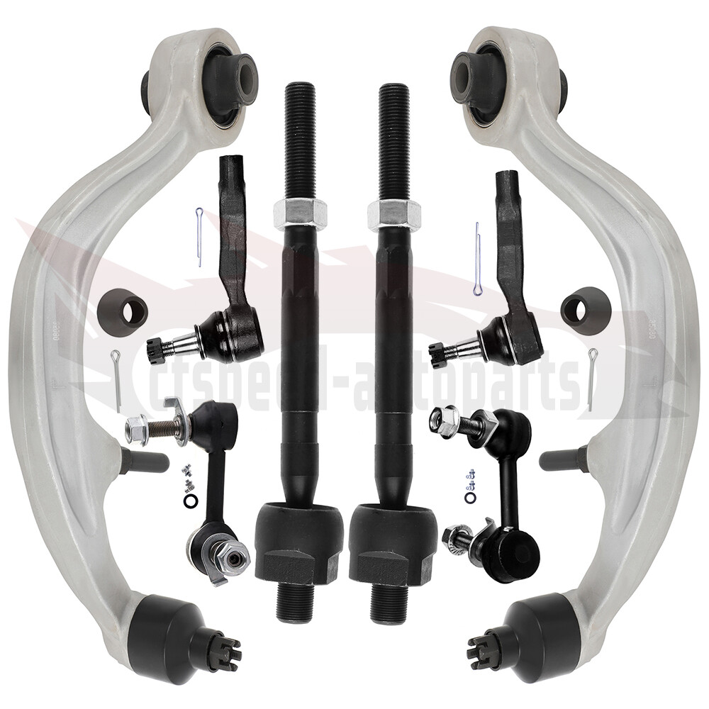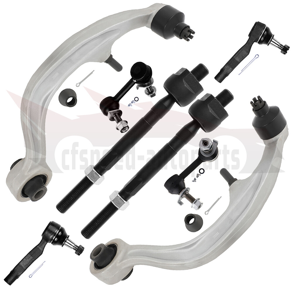 1.Fit For: INFINITI G35 2003-2007 RWD (Rear Wheel Drive)Coupe Models ONLY NISSAN 350Z 2003-2009 All Models 2.Package Includes: 2x Front Inner Tie Rod End -EV80279 1x Front Sway Bar End Link - Passenger Side -K750100 1x Front Sway Bar End Link - Driver Side -K750101 1x Front Outer Tie Rod End - Passenger Side -ES80578 1x Front Outer Tie Rod End - Driver Side -ES80579 1x Front Lower Control Arm and Ball Joint Assembly - Rear Position Passenger Side -K621372 1x Front Lower Control Arm and Ball Joint Assembly - Rear Position Driver Side -K621373 Cfspeed-autoparts 8PCS Front Lower Suspension Control Arm w/ Ball Joints For Nissan 350Z 2003-2009 1.Fit For: INFINITI G35 2003-2007 RWD (Rear Wheel Drive)Coupe Models ONLY NISSAN 350Z 2003-2009 All Models 2.Package Includes: 2x Front Inner Tie Rod End -EV80279 1x Front Sway Bar End Link - Passenger Side -K750100 1x Front Sway Bar End Link - Driver Side -K750101 1x Front Outer Tie Rod End - Passenger Side -ES80578 1x Front Outer Tie Rod End - Driver Side -ES80579 1x Front Lower Control Arm and Ball Joint Assembly - Rear Position Passenger Side -K621372 1x Front Lower Control Arm and Ball Joint Assembly - Rear Position Driver Side -K621373 3.Note Although some parts have grease fittings, other parts are factory sealed, but do not affect the fit and quality of the parts. 10 Year Warranty Please check above compatibility list to make sure it fits your vehicle. Ball Joint Ball joints may be grouped into two classifications, load carrying and non-load carrying. Ball joints may be manufactured with forged, stamped, cold-formed, or screw-machined housings. The coil spring is seated on the control arm to which the load-carrying ball joint is attached. For example, when the coil spring is mounted between the lower control arm and the chassis, the lower ball joint is a load-carrying joint. In a torsion bar suspension, the load-carrying ball joint is mounted on the control arm to which the torsion bar is attached. A load-carrying ball joint supports the vehicle weight. Tie-Rod End Replacement Guideline: If you feel a bump in the steering when driving over road bumps or curbs, this might be due to worn tie rod ends or inner tie rods. Clicking noises during sudden steering movements can also be symptoms of a defective tie rod. In order to determine the exact cause and replace the defective tie rod, the car must be elevated with a vehicle lift in order to be examined more closely. This useful tip applies to the exchange of tie rod ends and inner tie rods, which together form the so-called tie rod. Picture(A) Note: Cleanliness is extremely important when working on the power steering. Incorrect work and contamination can lead to leakage and, in the worst case, to failure of the steering assistance. 1.Lift the vehicle and dismount the front axle wheels. 2.Spray the fastening nut of the tie rod end with rust remover and leave it on for a few minutes. Picture(B) 3.Dismount the front underride guard. Picture(C) 4.Loosen the fastening nut from the tie rod and remove it completely. 5.Remove the tie rod end from the steering knuckle using an appropriate ball joint separator. Picture(D) 6.Remove the clamp of the bellow on the steering gear. 7.Push the bellow towards the tie rod end. Picture(E) 8.Unscrew the inner tie rod from the rack. 9.Clean the sealing face of the bellow at the steering gear. Picture(F) 10.Clean the lug of the rubber contact surface of the ball joint in the steering knuckle. Note:Always use new self-locking nuts and bolts for a reliable repair. 11.Screw the new inner tie rod into the rack and tighten it with the tightening torque that has been specified by the vehicle manufacturer. Picture(G) 12.Mount the bellow and close the clamps with the appropriate special tool. Note:Incorrect mounting of the bellow can lead to corrosion of the rack: the steering gear starts leaking which can lead to a failure in the steering assistance. Picture(H) 13.Secure the ball joint in the steering knuckle and mount the nut. Please observe the tightening torque suggested by the vehicle manufacturer. Note:During mounting, the ball stud should not turn within the ball joint. This can cause damage inside the ball joint and can lead to early failure. Tip:Secure the ball stud against twisting with a suitable tool. Picture(I) 14.Mount the front underride guard. 15.Mount the front wheels and tighten them with the tightening torque recommended by the vehicle manufacturer. 16.Align the wheels and adjust them if necessary. Observe the vehicle manufacturer specifications. 17.Perform a test drive. Note:When performing the test drive, pay special attention to the handling while cornering and listen for possible noise emission. Sway Bar Stabilizer Link Replacement Guideline: While driving, the following signs may indicate a faulty sway bar stabilizer link: (1).Rattling and thumping noises on rough roads. (2).Imprecise vehicle handling. (3).Stronger inclination of the vehicle during cornering. If the sway bar stabilizer link is found to be defective, it should be replaced as described below. Picture(A) 1.Raise vehicle and remove front wheels. Tip:Always check both stabilizer links and replace them in pairs if necessary. 2.Spray fastening nuts of the stabilizer link with rust remover and let act for a few minutes. Picture(B) 3.Loosen the lower fastening nut of the stabilizer link at the stabilizer and remove. Tip:If the ball stud also starts to turn, hold it with a suitable tool. 4.Press stabilizer link out of torsion bar. Picture(C) 5.Loosen the upper fastening nut of the stabilizer link at the suspension strut and remove it. Tip:If the ball stud also starts to turn, hold it with a suitable tool. Picture(D) 6.Press stabilizer link at suspension strut out of bracket. Picture(E) 7.Insert new stabilizer link at suspension strut. Picture(F) 8.Tighten stabilizer link at suspension strut to the tightening torque specified by the vehicle manufacturer. Tip:Secure the ball stud against twisting wit