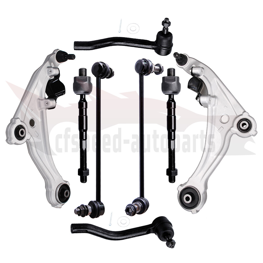 1.Fit For: NISSAN ALTIMA 2007-2012 All Models (Excludes Hybrid) NISSAN ALTIMA 2013 Coupe Models ONLY 2.Package Includes: 1x Front Sway Bar End Link - Passenger Side -K750094 1x Front Sway Bar End Link - Driver Side -K750095 1x Outer Tie Rod End -es800357 1x Outer Tie Rod End -es800358 2x Inner Tie Rod End -ev800356 1x Front Lower Control Arm and Ball Joint - Driver Side -k620195 1x Front Lower Control Arm And Ball Joint - Passenger Side -k620196 3.Note Although some parts have grease fittings, other parts are factory sealed, but do not affect the fit and quality of the parts. Cfspeed-autoparts 8PCS Front Lower Control Arm w/ Ball Joints Suspension For Nissan Altima 2007-13 1.Fit For: NISSAN ALTIMA 2007-2012 All Models (Excludes Hybrid) NISSAN ALTIMA 2013 Coupe Models ONLY 2.Package Includes: 1x Front Sway Bar End Link - Passenger Side -K750094 1x Front Sway Bar End Link - Driver Side -K750095 1x Outer Tie Rod End -es800357 1x Outer Tie Rod End -es800358 2x Inner Tie Rod End -ev800356 1x Front Lower Control Arm and Ball Joint - Driver Side -k620195 1x Front Lower Control Arm And Ball Joint - Passenger Side -k620196 3.Note Although some parts have grease fittings, other parts are factory sealed, but do not affect the fit and quality of the parts. 10 Year Warranty Please check above compatibility list to make sure it fits your vehicle. Ball Joint Ball joints may be grouped into two classifications, load carrying and non-load carrying. Ball joints may be manufactured with forged, stamped, cold-formed, or screw-machined housings. The coil spring is seated on the control arm to which the load-carrying ball joint is attached. For example, when the coil spring is mounted between the lower control arm and the chassis, the lower ball joint is a load-carrying joint. In a torsion bar suspension, the load-carrying ball joint is mounted on the control arm to which the torsion bar is attached. A load-carrying ball joint supports the vehicle weight. Tie-Rod End Replacement Guideline: If you feel a bump in the steering when driving over road bumps or curbs, this might be due to worn tie rod ends or inner tie rods. Clicking noises during sudden steering movements can also be symptoms of a defective tie rod. In order to determine the exact cause and replace the defective tie rod, the car must be elevated with a vehicle lift in order to be examined more closely. This useful tip applies to the exchange of tie rod ends and inner tie rods, which together form the so-called tie rod. Picture(A) Note: Cleanliness is extremely important when working on the power steering. Incorrect work and contamination can lead to leakage and, in the worst case, to failure of the steering assistance. 1.Lift the vehicle and dismount the front axle wheels. 2.Spray the fastening nut of the tie rod end with rust remover and leave it on for a few minutes. Picture(B) 3.Dismount the front underride guard. Picture(C) 4.Loosen the fastening nut from the tie rod and remove it completely. 5.Remove the tie rod end from the steering knuckle using an appropriate ball joint separator. Picture(D) 6.Remove the clamp of the bellow on the steering gear. 7.Push the bellow towards the tie rod end. Picture(E) 8.Unscrew the inner tie rod from the rack. 9.Clean the sealing face of the bellow at the steering gear. Picture(F) 10.Clean the lug of the rubber contact surface of the ball joint in the steering knuckle. Note:Always use new self-locking nuts and bolts for a reliable repair. 11.Screw the new inner tie rod into the rack and tighten it with the tightening torque that has been specified by the vehicle manufacturer. Picture(G) 12.Mount the bellow and close the clamps with the appropriate special tool. Note:Incorrect mounting of the bellow can lead to corrosion of the rack: the steering gear starts leaking which can lead to a failure in the steering assistance. Picture(H) 13.Secure the ball joint in the steering knuckle and mount the nut. Please observe the tightening torque suggested by the vehicle manufacturer. Note:During mounting, the ball stud should not turn within the ball joint. This can cause damage inside the ball joint and can lead to early failure. Tip:Secure the ball stud against twisting with a suitable tool. Picture(I) 14.Mount the front underride guard. 15.Mount the front wheels and tighten them with the tightening torque recommended by the vehicle manufacturer. 16.Align the wheels and adjust them if necessary. Observe the vehicle manufacturer specifications. 17.Perform a test drive. Note:When performing the test drive, pay special attention to the handling while cornering and listen for possible noise emission. Sway Bar Stabilizer Link Replacement Guideline: While driving, the following signs may indicate a faulty sway bar stabilizer link: (1).Rattling and thumping noises on rough roads. (2).Imprecise vehicle handling. (3).Stronger inclination of the vehicle during cornering. If the sway bar stabilizer link is found to be defective, it should be replaced as described below. Picture(A) 1.Raise vehicle and remove front wheels. Tip:Always check both stabilizer links and replace them in pairs if necessary. 2.Spray fastening nuts of the stabilizer link with rust remover and let act for a few minutes. Picture(B) 3.Loosen the lower fastening nut of the stabilizer link at the stabilizer and remove. Tip:If the ball stud also starts to turn, hold it with a suitable tool. 4.Press stabilizer link out of torsion bar. Picture(C) 5.Loosen the upper fastening nut of the stabilizer link at the suspension strut and remove it. Tip:If the ball stud also starts to turn, hold it with a suitable tool. Picture(D) 6.Press stabilizer link at suspension strut out of bracket. Picture(E) 7.Insert new stabilizer link at suspension strut. Picture(F) 8.Tighten stabilizer link at suspension strut to the tightening torque specified by the vehicle manufacturer. Tip:Secure the ball stud against twisting with a suitable tool. Picture(G) 9.Insert new stabilizer link at s