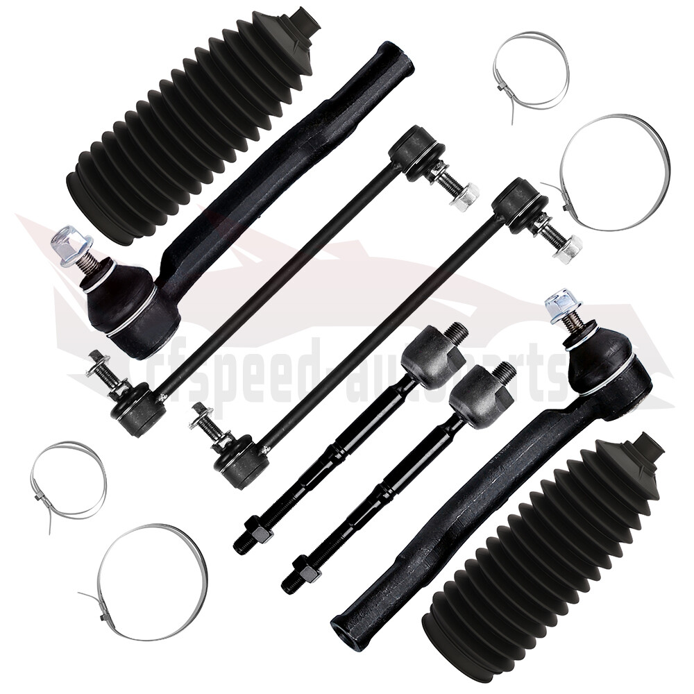 1.Fit For 2007 - 2012 Nissan VERSA Model Year 2012 fits 1.8L Hatchback Only 2.Package Includes: 2x Part# Front Sway Bar End Link-K750098 1x Part# Front Outer Tie Rod End - Driver Side-ES800248 1x Part# Front Outer Tie Rod End - Passenger Side-ES800249 2x Part# FRONT INNER TIE ROD END-EV800322 2x Part# Rack and Pinion Bellow-103-3075 3.Notes (1).Please check the fitment chart above before payment making sure all the suspension parts listed on this page are compatible with your automobile. (2).Please refer to Moog official website before narrowing down your search so as to avoid unnecessary item not as described return requests. Cfspeed-autoparts 8PCS Front Sway Bars Inner Outer Tie Rod End Linkage For 2007-2012 Nissan Versa 1.Fit For 2007 - 2012 Nissan VERSA Model Year 2012 fits 1.8L Hatchback Only 2.Package Includes: 2x Part# Front Sway Bar End Link-K750098 1x Part# Front Outer Tie Rod End - Driver Side-ES800248 1x Part# Front Outer Tie Rod End - Passenger Side-ES800249 2x Part# FRONT INNER TIE ROD END-EV800322 2x Part# Rack and Pinion Bellow-103-3075 3.Notes (1).Please check the fitment chart above before payment making sure all the suspension parts listed on this page are compatible with your automobile. (2).Please refer to Moog official website before narrowing down your search so as to avoid unnecessary item not as described return requests. (3).Please contact our customer services for targeted discount after all the items are received if you have reached any targeted discount thresholds, the terms of which is at the bottom of this page. Ball Joint Replacement Guideline: If there is a knocking or clunking noise in the area of the front axle when the car is traveling over road bumps, potholes or curbs, then there is usually a defect in a component of the wheel suspension. Picture(A) The side of the front axle from which the (vibration) noise is emanating can already be determined during a test drive. The type of noise also already provides certain indications for maintenance regarding which components might be faulty. Picture(B) 1.Raise the vehicle and remove the front wheels. 2.To loosen the fastening screws and fixing nuts of the compression ball joint more easily, spray them with rust remover and allow to act for a few minutes. Picture(C) 3.Loosen the fastening screws of the broken ball joint on the control arm and remove the nuts. Picture(D) 4.Loosen and remove the fixing nut of the ball joint on the steering knuckle. Tip:If the ball stud rotates, hold the ball stud in place with a hexagon socket. Picture(E) 5.Remove the bad or worn ball joint from the control arm. 6.Loosen the compression ball joint on the steering knuckle using a suitable special tool. Picture(F) 7.Clean the cone connection. Tip:For better sealing and durability of the ball joint sleeve, a little silicone grease can be applied to the contact surface. Picture(G) 8.Insert new compression ball joint in the control arm and steering knuckle and tighten with new fixing nuts. 9.Reinstall front wheels. Lower the vehicle and tighten the wheel studs to the tightening torque specified by the vehicle manufacturer. 10.Measure the chassis and adjust it using the various holes on the compression ball joint if necessary. 11.Finally, carry out a test drive. Sway Bar Stabilizer Link Replacement Guideline: While driving, the following signs may indicate a faulty sway bar stabilizer link: (1).Rattling and thumping noises on rough roads. (2).Imprecise vehicle handling. (3).Stronger inclination of the vehicle during cornering. If the sway bar stabilizer link is found to be defective, it should be replaced as described below. Picture(A) 1.Raise vehicle and remove front wheels. Tip:Always check both stabilizer links and replace them in pairs if necessary. 2.Spray fastening nuts of the stabilizer link with rust remover and let act for a few minutes. Picture(B) 3.Loosen the lower fastening nut of the stabilizer link at the stabilizer and remove. Tip:If the ball stud also starts to turn, hold it with a suitable tool. 4.Press stabilizer link out of torsion bar. Picture(C) 5.Loosen the upper fastening nut of the stabilizer link at the suspension strut and remove it. Tip:If the ball stud also starts to turn, hold it with a suitable tool. Picture(D) 6.Press stabilizer link at suspension strut out of bracket. Picture(E) 7.Insert new stabilizer link at suspension strut. Picture(F) 8.Tighten stabilizer link at suspension strut to the tightening torque specified by the vehicle manufacturer. Tip:Secure the ball stud against twisting with a suitable tool. Picture(G) 9.Insert new stabilizer link at stabilizer. 10.Tighten stabilizer link at stabilizer to the tightening torque specified by the vehicle manufacturer. Tip:Secure the ball stud against twisting with a suitable tool. Picture(H) 11.Remount the front wheels. Lower the vehicle and tighten the wheel studs to the tightening torque specified by the vehicle manufacturer. Tip:Even if replacing the stabilizer link does not directly affect the chassis setting, we recommend checking the axle setting and adjusting if necessary after working on the suspension. 12.Conclude with a test drive. Tie-Rod End Replacement Guideline: If you feel a bump in the steering when driving over road bumps or curbs, this might be due to worn tie rod ends or inner tie rods. Clicking noises during sudden steering movements can also be symptoms of a defective tie rod. In order to determine the exact cause and replace the defective tie rod, the car must be elevated with a vehicle lift in order to be examined more closely. This useful tip applies to the exchange of tie rod ends and inner tie rods, which together form the so-called tie rod. Picture(A) Note: Cleanliness is extremely important when working on the power steering. Incorrect work and contamination can lead to leakage and, in the worst case, to failure of the steering assistance. 1.Lift the vehicle and dismount the front axle wheels. 2.Spray the fastening nut of the 