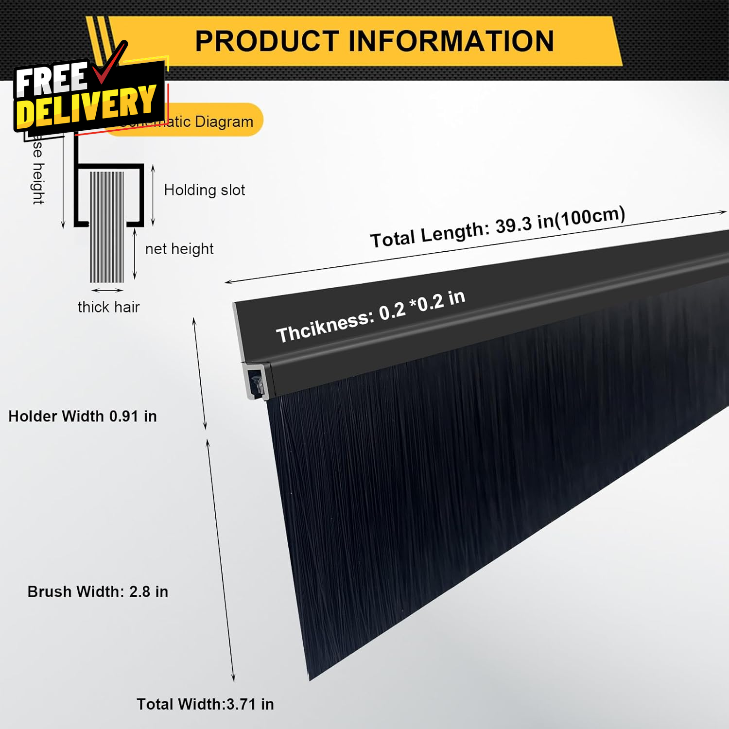 Store New Arrivals Add to Favorite View Feedback Contact 8-Pack Garage Door Brush Seal Black Bottom Sweep Roll-Up Door Stripping 2.80.... Description 【Package Contents】Door brush seal measures 0.91 inches plus 2.80 inches, with a standard length of 39.37 inches (1 meter). The package includes 8 x Door Brush Bottom Sweep, 32 x Mounting Screws. 【Precise manufacturing】Door sweep brush features SUS304 stainless steel screws, high-quality PP hair,6063 aluminum housing, with seamless sealing in PE and tested proteciton box. The bristle density and thickness are uniform, ensuring effective sealing that reduces the energy loss and keeps the room tidy and clean. 【Convenient Replacement】Garage door sweep brush and aluminum are of independent design. Door brush seal features four pre-drilled holes and comes with installation screws. The brush sheet can be removed for easy cleaning or replacement, extending the service life. 【Durable Material】The door bottom sweep adopts aluminum alloy bracket and nylon brush design, which has excellent rust resistance, durable and not easy to fall off.Designed for a perfect fit and easy installation, these durable sweeps effectively block drafts, dust, and pests. Item model number 2.8 Item Thickness 2.8 Inches Batteries Required? No Number of Items 8 Item Package Quantity 8 Unit Count 26.25 Feet Color Black+black Material Aluminum, PP, SUS304 Item Weight 4.34 pounds Batteries Included? No Recommended Uses For Product Screw driving to the door panel Product Dimensions 39.37"L x 3.7"W Included Components aluminum housing, PP sheet, SUS304M Screws ABOUT US Prior to making any purchase from our store, we’d like to introduce ourselves. My name is Shahzad Yaqub , and I am the proud owner of Epic Emporium Deals , located in the great state of Illinois, USA. I have been an active and trusted eBay seller since Jan 14, 2025 . At Epic Emporium Deals , we are committed to offering competitive prices and top-quality products . Our extensive collection features a wide variety of items, including media such as books, movies, music, and games , as well as electronics, toys, sporting apparel, clothing, tools , and general home and garden essentials —and much more! If you have any questions or require assistance, please don’t hesitate to reach out. Your satisfaction is our priority, and we look forward to providing you with an exceptional shopping experience. SHIPPING We are always working hard to ensure your package arrives as soon as possible. Please understand that some factors like weather, high postal traffic, and the performance of shipping companies are outside of our control. We offer free shipping to the lower 48 states and ship within 2 business days of payment, usually sooner. We do not accept P.O. Boxes. Please provide a physical address. For shipping outside of the continental USA, we only use eBay's Global Shipping Program. The item is shipped to IL and then sent to the rest of the world. International customers are responsible for all duties and taxes. Continue to 'check out' to calculate costs for shipping the item to your country. Messages regarding eBay's Global Shipping Program MUST be directed at eBay EXCLUSIVELY. RETURNS We do not accept returns under normal circumstances. However, we will gladly consider a return if the item is received broken or if the wrong size is sent to you. In all other cases, returns will not be accepted. CUSTOMER SATISFACTION We try our very best to make sure every customer is completely satisfied. If there's a problem, message us! We're happy to help.