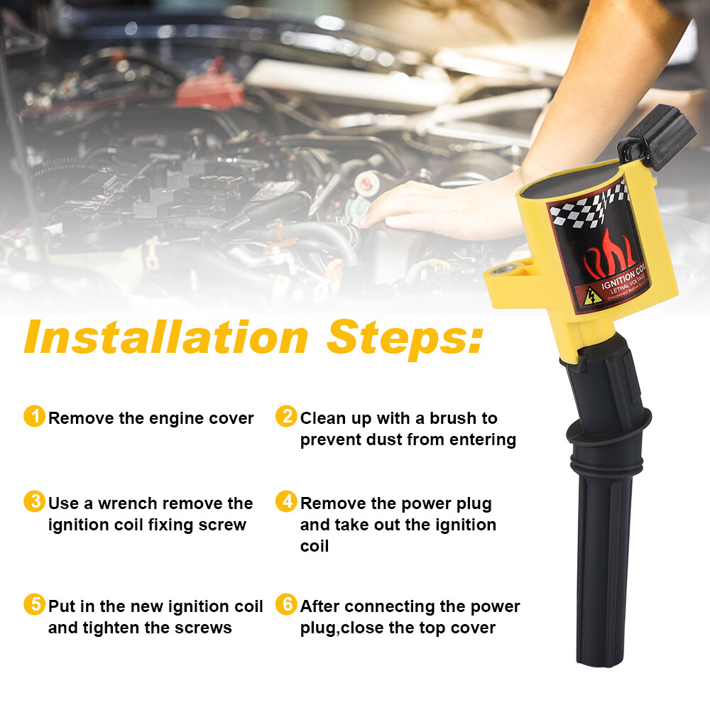 Description: This set of 8 brand - new, high - quality direct - fit copper ignition coils with boots and springs offers top - tier performance. Made with top - grade silicone magnetic steel, imported German copper wire, and high - temperature epoxy from Germany, along with GE Valox resin for high - voltage resistance. Optimized internal winding design boosts energy output by 15% compared to other coils. Advanced bobbin technology enhances durability. Feature: Automotiveparts_aa Best choice of motor parts 8Pack Ignition Coil For Ford F150 Expedition Mustang V8 4.6/5.4/6.8L DG508 FD503 Description : This set of 8 brand - new, high - quality direct - fit copper ignition coils with boots and springs offers top - tier performance. Made with top - grade silicone magnetic steel, imported German copper wire, and high - temperature epoxy from Germany, along with GE Valox resin for high - voltage resistance. Optimized internal winding design boosts energy output by 15% compared to other coils. Advanced bobbin technology enhances durability. Feature: 100% Brand New Items, Never Used Or Installed High quality Proper alignment, positioning and spacing for faster, easier installation Designed to meet or exceed specifications in form, fit and function High quality components and materials Superior performance and reliability Specifications: Coil Wire Attachment: Female/Socket Coil Style: Coil pack Primary Resistance: 0.660 ohms Coil Internal Construction: Epoxy Coil Color: Yellow Maximum Voltage: 26,000 V Turns Ratio: 61:1 Secondary Resistance: 6.1K ohms Mounting Bracket Included: No Coil Wire Included: No Ballast Resistor Included: No Coil Shape: Curved Quantity: Sold as a set of 10 Notes: Fits 2-valve engines only. Connector: 2 pins Connection gender: female Terminal gender: male Terminal type: blade Voltage: 12V Part Number: DG508, FD503, DG491, E222, F523, F7TU-12A366AB , COP9,3W7Z12029AA FD79 13062237, 1972290, 1L2U12029AA, 1L2U12A366AA, 1L2Z12029AA, 1L2Z12029AC, 21941483, 21941485, 21941505, 3W7Z12029AA, 71HM12300AA, 72HF12300AA, 75HF12300AA, 88921369, A780X12300HA, C409, C469, C471, D1FZ12300A, D1RY12300A, DC263, DC88, DCE258, DCE261, DCE263, DG467, DG473, DG481, F7TU12A336CB, F7TU12A366AB, F7TU12A366BA, F7TU12A366CC, F7TU12A366CD, F7TZ12029AB, F7TZ12029BA, F7TZ12029CA, F7TZ12029CB, F7TZ12029CC, FD493, FD79XA Compatible Vehicle(for reference only) Fits for Curved style Coil,does not fit Straight style !!! 1998- 2011 Ford Crown Victoria 4.6L V8 2003 - 2011 Ford E-150 5.4L V8 2003- 2011 Ford E-150 4.6L V8 2003 -2005 Ford E-150 Club Wagon 5.4L V8 2003 -2005 Ford E-150 Club Wagon 4.6L V8 1997 - 2002 Ford E-150 Econoline 5.4L V8 1999-2002 Ford E-150 Econoline 4.6L V8 2000- 2002 Ford E-150 Econoline Club Wagon 4.6L V8 1997 - 2002 Ford E-150 Econoline Club Wagon 5.4L V8 2003 - 2009 Ford E-250 5.4L V8 2003 - 2009 Ford E-250 4.6L V8 1997 - 2002 Ford E-250 Econoline 5.4L V8 2003 -2005 Ford E-250 Super Duty 5.4L V8 2003 Ford E-350 5.4L V82003 Ford E-350 6.8L V10 2003 - 2005 Ford E-350 Club Wagon 5.4L V8 2003 - 2005 Ford E-350 Club Wagon 6.8L V10 1997 - 2002 Ford E-350 Econoline 5.4L V8 1997 - 2002 Ford E-350 Econoline 6.8L V10 1997 - 2002 Ford E-350 Econoline Club Wagon 5.4L V8 1997 -2002 Ford E-350 Econoline Club Wagon 6.8L V10 2004 -2009 Ford E-350 Super Duty 5.4L V8 2004 - 2009 Ford E-350 Super Duty 6.8L V10 2000-2002 Ford E-450 Econoline Super Duty 5.4L V8 2000-2002 Ford E-450 Econoline Super Duty 6.8L V10 2000 -2002 Ford E-450 Econoline Super Duty Stripped 5.4L V8 2000- 2002 Ford E-450 Econoline Super Duty Stripped 6.8L V10 2003-2009 Ford E-450 Super Duty 5.4L V8 2003- 2009 Ford E-450 Super Duty 6.8L V10 2003 Ford E-450 Super Duty Stripped Chassis 5.4L V8 2003 Ford E-450 Super Duty Stripped Chassis 6.8L V10 2003 Ford E-550 Super Duty 6.8L V10 1997-1999 Ford Econoline Super Duty 5.4L V8 1997 - 1999 Ford Econoline Super Duty 6.8L V10 2000 - 2005 Ford Excursion 5.4L V8 2000 - 2005 Ford Excursion 6.8L V10 2000-2004 Ford Expedition 4.6L V8 1997 - 2004 Ford Expedition 5.4L V8 2002- 2005 Ford Explorer 4.6L V8 1997 - 2003 Ford F-150 5.4L V8 2007- 2009 Ford F-150 4.6L V8 2004 Ford F-150 Heritage 4.6L V8 1997-1999 Ford F-250 5.4L V8 1999 - 2004 Ford F-250 Super Duty 5.4L V8 1999 -2005 Ford F-250 Super Duty 6.8L V10 1999 - 2004 Ford F-350 Super Duty 5.4L V8 1999 - 2004 Ford F-350 Super Duty 6.8L V10 1999- 2004 Ford F-450 Super Duty 6.8L V10 1999 -2004 Ford F-550 Super Duty 6.8L V10 1999 - 2004 Ford Mustang 4.6L V8 1998 Lincoln Navigator 5.4L V8 SOHC (Single overhead cam *only*) SOHC-Note for 1998 Navigator. 1999- 2009 Lincoln Town Car 4.6L V8 1998 -2011 Mercury Grand Marquis 4.6L V8 2002 - 2005 Mercury Mountaineer 4.6L V8 Please pay attention to the compatibility and find whether it fits your car or not. Package included: 8x Ignition coils DG508 Installation: 1. Open the ignition coil cover on the top of the engine; 2. Use the wrench to remove the ignition coil fixing screw; 3. Remove the ignition coil. 4. Use a screwdriver to gently tilt up and take out the ignition coil; 5. Put in a new ignition coil and fasten the screws; 6. After connecting the plug, see Cover the top cover. Notes: (1)Please make sure the part numbers matches the part you are replacing. Please review the information above carefully to make sure this part fits your vehicle. (2)If you have questions on whether this part fits your vehicle, please feel free to contact us via eBay.Thank you! (3)We will process your order within 1 business day upon payment. (4)If you have any questions about quality, shipping or other problems, please contact me first via eBay message. (5)Please don't open cases or return requests without contacting me. I will give you a satisfy solution. Certificates of our product: Our Factory: Payment PayPal: We accept Credit card, Debit card, Apple Pay, Google Pay and PayPal. Shipping We ship all items to United States only. International shipping is provided by Ebay global shipping program and is calculated once the items are