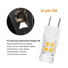 G8 2W Not Dimmable Ceramic LED bulb Specifications Base: G8 bi-pin Power: 2W CRI: Ra>85 Dimmable: No Material: Ceramic,Plastic Voltage: AC 110V Brightness: 180 Lumens Net Weight: per 0.2oz Light Color: Warm White 3000k Size: 12.6mm *35.8mm / 0.50in * 1.41in (D* H) LED Type: 17pcs 2835 SMD Beam Angle: 360 degrees Package include: 8 x G8 Mini Led Light Bulb Applications: Widely used in under center kitchen lighting, under cabinet lighting, accent lights, puck lights, desk lamps, pendant lights, bathroom vanity lighting, landscape lighting and many other places where you need the light. Notes 1. Please check the size of G8 led bulbs first to see if it is too big or small to fit into your fixture. 2. This G8 led bulbs is G8 Bi-pin base, please check the base of your fixture carefully before purchase. 3.A good quality LED DIMMER is needed to keeps a stable dimming performance when using the G8 led bulbs. 4.When you turn off the LED bulbs, there maybe remain glimmer light, which is a common phenomenon and does not affect using. ◀ Low Power Consumption G8 LED Bulb: 2W Not Dimmable G8 LED Corn Light Bulb, 20 Watt Halogen Bulb Equivalent , CRI85+. With 17 LEDs of SMD 2835, with lighting angle of 360 °, 90% more energy saving compared with Incandescent light. ◀ Long Life Bulb: Energy saving and long service life 50,000 hours. Package include 8 pcs G8 Led bulb. ◀ Widely Use: The 2700K-3000K Warm white Decorative bulb is most suitable for under center kitchen lighting, under cabinet lighting and puck light. ◀ Easy Installation: 12.6mm *35.8mm / 0.50in * 1.41in (D* H). Designed to fit standard G8 fittings. Tips: Please check the bulb's dimension carefully to see if it can fit your fixture. ◀ Note: It is common that a slight flicker may occur in the Low setting; Have any questions about our products, please feel free to us via directly.