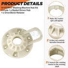 PACKAGE INCLUDES 8 Pack basket driven hub & drive block retainer Kit EASY TO INSTALL REQUIRED TOOLS:Flat head screw driver, 7/16 socket/wrench, Phillips screwdriver and drill bit. Installation Instructions: 1, Remove the bowl bolt cover. 2, Remove the 1/4 inch bolt and remove the agitator hub. 3, Remove the bowl cover bracket, and then remove the Phillips screw. 4, Replaced the hub and bracket of the basket drive. 5, Reinstall the Phillips screws. 6, Reinstall the agitator hub, tighten the bowl bolts and reinstall the lid. PRODUCT SPECIFICATIONS ①The hub is located beneath your washer’s agitator. Replacing a worn or cracked hub can fix washers that fail to agitate or spin properly. ②Drive hub kit W10528947 connects the spin basket to the spin shaft that spins the basket. The kit may include multiple parts; refer to your parts diagram for a complete list of parts included.Unplug the washer before installing this part. Wear work gloves to protect your hands. FIX PROBLEMS Washer was noisy Leaking water Won’t agitate or won’t spin properly shaking and moving. Fit Washer Model: Whirlpool: 7MWTW1950YW2,7MWTW4915EW0,7MWTW4925EW0,7MWTW5500XW2,7MWTW5521BW0,7MWTW5521BW1,7MWTW5550YW2,7MWTW5622BW0,7MWTW5622BW1,7MWTW5700YW2,7MWTW5722BC0,MVWC565FW0,4KWTW4845FW0,WTW4915EW1,7MWTW4925EW1,2DWTW5500XW1,3LWTW5550YW2,4GWTW5550YW2,4KWTW4930DQ0,7MWTW4915EW1,WTW4915EW2,4GWTW4950YW2,WTW4850HW0,WTW4855HW0,WTW4950HW0,WTW4955HW0,WTW5000DW2,WTW4850HW1,WTW4855HW1,WTW4950HW1,WTW4955HW1,4KWTW5700JW0,4KWTW5800JW0,MVWX655DW0,WTW4655JW0,WTW4850HW2,WTW4900AW0,WTW4900BW0,WTW4900BW1,WTW4915EW0,WTW4950XW3,WTW5000DW0,WTW5000DW1,WTW5000DW3,WTW5500BW0,WTW5500XW3,WTW5550XW3,WTW5600XW3,WTW5610XW3,WTW5640XW3,WTW5700AC0,WTW5700XL3,WTW5700XW3,WTW5800BC0,WTW5800BW0,WTW5810BW0,WTW5840BC0,WTW5840BW0 Kenmore: 11022242510, 11022342512, 11022442512, 11022342510, 11022342511, 11022442510 11025102310, 11025102311, 11025132410, 11025132411, 11026002012, 11026012012 11026112310, 11027102310, 11028002012, 11028012012, 11020362810, 11028002012 Maytag: MVWC415EW1,7MMVWC400YW2,7MMVWH450DW0,7MMVWH450DW1,7MMVWX500YW2,7MMVWX510YW1,7MMVWX521BW0,7MMVWX521BW1,7MMVWX622BW0,7MMVWX655EW0,7MMVWX700XL2,7MMVWX722BG0,7MMVWX722BG1,MVWC565FW0,MVWX550XW2,MVWX600BW0,MVWC416FW0,3LMVWC415FW0,4KMVWC415FW0,4KMVWC425FW0,MVWC450XW4,MVWC415EW2,MVWC400XW4,MVWC555DW0,MVWC555DW1,3LMVWC400YW3,4GMVWC400YW2,4KMVWC330DW0,4KMVWC400BW0,7MMVWX655EW1,4KMVWC405BW0,4KMVWX505BW0,MVWC415EW0,MVWC565FW1,MVWP575GW0,MVWC465HW0,7MMVWC416FW0,7MMVWC417FW0,7MMVWC565FW0,MVWC416FW1,MVWX5SPAW0,MVWC465HW1,MVWC465HW2,7MMVWC465JW0,7MMVWC565FW1,MVWC360AW0,MVWC425BW0,MVWC425BW1,MVWP475EW0,MVWX500BW0,MVWX500XL2,MVWX500XW2,MVWX600XW2,MVWX655DW0,MVWX655DW1,MVWX700AG0,MVWX700XL2,MVWX700XW2 On Apr 30, 2025 at 10:00:39 PDT, seller added the following information: