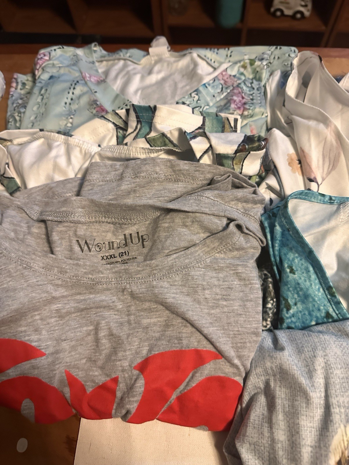 This lot includes 8 women's plus size tops in size 3XL, featuring a mix of tank, short, and no sleeves. These casual tops have a pullover closure and are machine washable, making them easy to care for. The colorful tops are made from various materials and fabrics, providing comfort and style for the summer and spring seasons. Perfect for women looking for basic and stylish blouse options in a plus size fit.