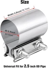 2.5 Inch Stainless Steel Exhaust Clamp Butt Joint Band Sleeve Coupler