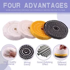 8Pcs 4 Inch Polishing Wheels Pad Wheels with 3Pcs Polishing Compounds8324 1. These Compounds are color coded for easy identification in a scale from coarse to fine. You can easily choose the thickness that suits you according to the color. It can emit cold light after polishing, and the brightness reaches the mirror level. Contains high anti-rust ingredients to extend the anti-rust life of the product. , not easy to wear, help you save costs. 2. Used for drill with 1/4 inch shank. Our products come with a handle, so you don't need to buy it separately. Soak the grinding wheel in water for a while before use, which can increase the of the grinding products. After making sure the polishing wheel is firmly installed,start the machine. Start polishing machine at low speed and increase speed as you need. 3. It is suitable for the grinding and polishing of metal, jewellery, hardware, stainless steel, aluminum products, wood, plastic, ceramics, glass and watches. Equipped with four different hardness polishing wheels, you can choose according to the needs of the processed items. Three different colors of polishing wax make your choices more diversified. This set of products can meet your in work and life. 4. Our white flannelette polishing wheels are made of high-quality cotton cloth with soft , excellent polishing effect and high grinding efficiency. The edge of the cloth layer is processed by raising, the mirror polishing effect is good, and the workpiece not be damaged. They are fastened with compact cotton thread, not easy to loosen during buffing. Compatible Devices: Bench Grinder Material:cotton colour:Photo Color Package Contents: 1 * White Cotton Polishing Wheels (50Ply) 1 * Yellow Cotton Polishing Wheels(36Ply) 1 * Flannel Polishing Wheels(30Ply) 1 * Polishing Wheels 1 * Brown Polishing Compound 1 * Green Polishing Compound 1 * White Polishing Compound 1 * 1/4 inch Shank for Drill Only t