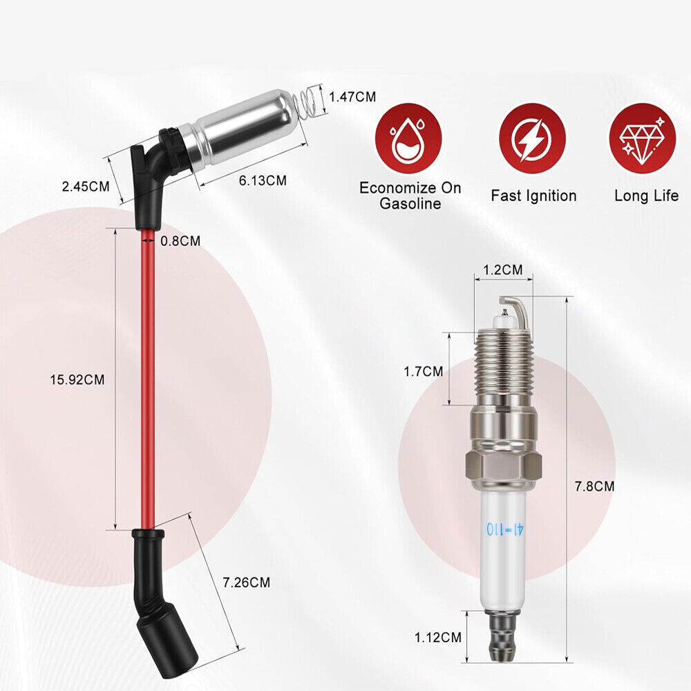New 8mm Wireset & 8 Spark Plug 41-962 for Chevy Silverado 1500 GMC Sierra V8 Item Description Compatible With: This 8 packs of Iridium Spark Plugs and Spark Plug Wires are compatible with 2007-2013 Chevy Avalanche, 1999-2017 Chevy Silverado 1500, 2001-2015 Chevy Silverado 2500, 2009-2015 GMC Yukon Sierra, 2006-2009 Hummer, 2002-2013 Cadillac Escalade etc. (Please verify the vehicle model before purchasing) Replace Part Number: Spark plugs part number 41-110, 41110, 12680072, 12621258, 41-985, 12609877, 12571164. Spark plug wires part number: 48322, 48322R, M8-48322, 7831 High Performance: Iridium spark plugs is designed with extremely fine electrode tips to produce sharp and precise sparks, avoding vehicle idling and shaking or accelerates weakly. High Quality Spark Plug: the ignition wires are made of premium insulating materials for excellent insulation and durability, better preventing spark plug wire leakage, and high melting point to resist the extreme heat generated during the combustion process. Package Inludes: 8pcs 41-110 Spark Plugs + 8pcs M8-48322 Spark Plug. Please verify Fitment or Application. For product quality issues, we offer 1 year unlimited mileage warranty. If any problems, please contact us directly at any time. Features High Performance ,better quality Brand new Wireset,Spark Plug , never used or installed Ready to use, direct Replacement Built to strict quality control standards 100% Factory tested Superior quality part with OE+ durability Specifications Condition:100% Brand New Warranty: 90 Day Free Return:30 Day Color:Red Interchange Part Number: 89018058 89018056 GMC9906 9059 22716 27874 27873, 6718062 12558693 67118063 19005218 51033 51430 XS10388 748GG 748HH 3147 3152 9748HH, 88862122 88862385 9388G 9748GG 88862397 758EE 19301299 748UU 19206447 19209100, 748WW 9748UU 192297035 9748RR 19297032 748RR Fitment GMC Chevrolet Cadillac 2002-2005 Cadillac Escalade V8 5.3L 1999-2000 Cadillac Escalade V8 5.7L 2002-2013 Cadillac Escalade V8 6.0L 2007-2018 Cadillac Escalade V8 6.2L 2003-2006 Cadillac Escalade ESV V8 6.0L 2008-2019 Cadillac Escalade ESV V8 6.2L 2002-2006 Cadillac Escalade EXT V8 6.0L 2007-2013 Cadillac Escalade EXT V8 6.2L Hummer 2006-2007 Hummer H2 V8 6.0L 2008-2009 Hummer H2 V8 6.2L 1971 GMC K25/K2500 Pickup V8 5.7L 2007-2018 GMC Sierra V8 5.3L 2008-2018 GMC Sierra V8 6.2L 1999-2018 GMC Sierra 1500 V6 4.3L 1999-2013 GMC Sierra 1500 V8 4.8L 1999-2018 GMC Sierra 1500 V8 5.3L 2001-2013 GMC Sierra 1500 V8 6.0L 2007-2018 GMC Sierra 1500 V8 6.2L 2007 GMC Sierra 1500 Classic V6 4.3L 2007 GMC Sierra 1500 Classic V8 4.8L 2007 GMC Sierra 1500 Classic V8 5.3L 2007 GMC Sierra 1500 Classic V8 6.0L 2002-2006 GMC Sierra 1500 HD V8 6.0L 2019 GMC Sierra 1500 Limited V8 5.3L 1999-2000 GMC Sierra 2500 V8 5.3L 1999-2004 GMC Sierra 2500 V8 6.0L 2001-2018 GMC Sierra 2500 HD V8 6.0L 2002-2005 GMC Sierra 3500 V8 6.0L 2007 GMC Sierra 3500 Classic V8 6.0L 2007-2019 GMC Sierra 3500 HD V8 6.0L 2000-2009 GMC Yukon V8 4.8L 2000-2019 GMC Yukon V8 5.3L 1999-2000 GMC Yukon V8 5.7L 2001-2013 GMC Yukon V8 6.0L 2007-2019 GMC Yukon V8 6.2L 2017-2018 GMC Yukon XL V8 5.3L 2017-2018 GMC Yukon XL V8 6.2L 2000-2014 GMC Yukon XL 1500 V8 5.3L 2003-2006 GMC Yukon XL 1500 V8 6.0L 2010-2014 GMC Yukon XL 1500 V8 6.2L 2000-2013 GMC Yukon XL 2500 V8 6.0L 2007-2013 Chevrolet Avalanche V8 5.3L 2007-2008 Chevrolet Avalanche V8 6.0L 2002-2006 Chevrolet Avalanche 1500 V8 5.3L 1999-2017 Chevrolet Silverado 1500 V6 4.3L 1999-2013 Chevrolet Silverado 1500 V8 4.8L 1999-2017 Chevrolet Silverado 1500 V8 5.3L 2003-2013 Chevrolet Silverado 1500 V8 6.0L 2009-2017 Chevrolet Silverado 1500 V8 6.2L 2001-2006 Chevrolet Silverado 1500 HD V8 6.0L 2007 Chevrolet Silverado 1500 HD Classic V8 6.0L 2007-2009 Chevrolet Silverado 2500 V8 4.8L 2000-2015 Chevrolet Silverado 2500 V8 5.3L 2001 Chevrolet Silverado 2500 V8 5.7L 2000-2004 Chevrolet Silverado 2500 V8 6.0L 2001-2015 Chevrolet Silverado 2500 HD V8 6.0L 2007 Chevrolet Silverado 2500 HD Classic V8 6.0L 2000-2014 Chevrolet Suburban 1500 V8 5.3L 2000-2002 Chevrolet Suburban 1500 V8 5.7L 2006-2007 Chevrolet Suburban 1500 V8 6.0L 2000-2013 Chevrolet Suburban 2500 V8 6.0L 2000-2009 Chevrolet Tahoe V8 4.8L 2000-2017 Chevrolet Tahoe V8 5.3L 1999-2000 Chevrolet Tahoe V8 5.7L 2008-2013 Chevrolet Tahoe V8 6.0L 2008-2009 Chevrolet Tahoe V8 6.2L 1999 Chevrolet Tahoe V8 6.5L Please Double-Check that this is compatible with your vehicle. Package Included 8 x Spark Plugs 8 x Spark Plug Wires As pictures show FAQ: I purchased by mistake, how do I cancel the order? Please contact us ASAP. If the item has not been shipped out we can cancel the order for you. If the item was shipped out you can refuse the package and wait for the item to return to us. I received your item but it does not fit or is defective Please contact us so we can assist you on the matter. Buy with confidence Our quality is based on meeting the requirements of the manufacturer and improvement them in design problems manufacture. NOTE: (1)It would be highly appreciated if you might contact us first once you have any problems concerning the items. And you can expect all the issues would be resolved ASAP! (2)Please let us know before you send us the neutral/negative feedback that wont help to finish the issues. And I will definitely try my best to provide the best solutions which would meet our satisfactory! (3)According to the distance of the receipt address items would be sent from CA or NJ (4) This product does not include an installation manual