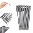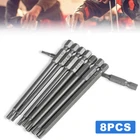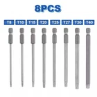 8PCS Torx S crewdriver Bits S et H ex S afety M agnetic H ead 100mm Product Characteristics High Q uality I ndustrial G rade M aterials: The Torx screwdriver bit set is made of high-quality S2 alloy steel with a special heat treatment process to increase the torque and full hardness of the bit, and it has good wear resistance and is more durable than regular Torx screwdriver bits. High P recision M achining T echnology: The product adopts CNC precision machining technology to ensure the accuracy of the product, so that the drill can withstand the instantaneous impact of large torque pneumatic tools, which greatly improves the service life of the product itself. Magnetic: The magnetic Torx screwdriver drill set can quickly and easily adsorb screws, greatly improving your work efficiency. Repeated use does not diminish the magnetic force. Suitable F or A V ariety O f P ower T ools: The 1/4" hexagon handle allows it to accommodate a wide range of power tools, allowing you to quickly change chucks. Suitable for electric drill, air drill, electric screwdriver, manual screwdriver and so on. A W ide R ange O f U se S cenarios: It can be widely used in automobile, home, industrial and other maintenance, and can also be used in other screw drives. Mechanical P rinciple D esign: Strong torque, high torque, after contact with the screw head, the impact reaction force generated by the impact screwdriver is absorbed by the torque part, effectively preventing the damage of the tool head. Straight and concentric, tight bite. Product Specification Status: 100% Brand New Material: S2 A lloy S teel Shank type: 6.35mm/ 1/4" hex shank Drill L ength: 100mm Torx Screwdriver B it s : T8, T10, T15, T20, T25, T27, T30, T40 Package Included 8 × 100mm Torx Screwdriver B it Attention P lease 1. Please allow manual measurement error of 1-5mm. Make sure you don't mind before you buy. 2. Due to lighting effects, brightness contrast Settings of the display, etc., there may be some slight differences in the hue of the picture and the actual item, please make sure you don't mind. 3. Due to the aperture of the drill bit with hole and the structure of the product itself, the speed of the T8 drill bit is recommended to be controlled at 180r/min during use to avoid the wear of the drill bit caused by too fast speed.