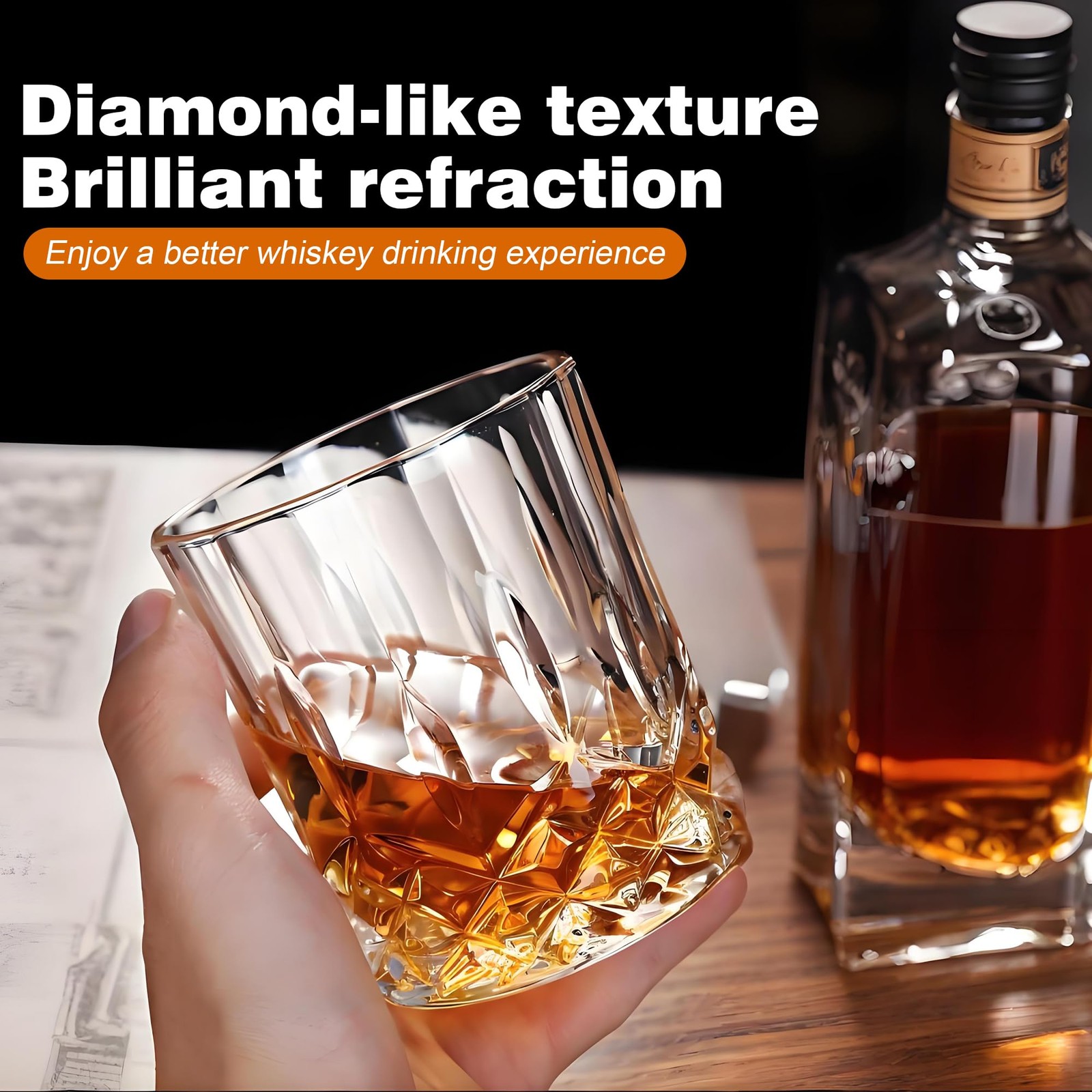 A Tasteful Life Starts with Whiskey Glassware Enjoy every wonderful moment with our whiskey glasses, feeling the mellowness and charm of your liquor Premium Quality Whiskey glasses are made from high quality lead free crystal glass, classic design with durable thick walled and heavy weighted base, the solid design is virtually unbreakable, premium material makes it dishwasher safe and also meet hotel and service industry quality standards. Safe Package the whiskey glasses are well packaged in the inside with tight seating and heavy foam to ensure safe shipping. The beautiful package makes our whiskey glass set an ideal gift for Men or Women on any occasions. Unique Design The bourbon glasses with embossed diamond design make it easier and better to grip, you will feel much different and comfortable in your hand than other cheap made glasses. Wide shaped on the top to ensure a smooth drinking and sipping experience, a high quality scotch glass creates a truly enjoyable whiskey tasting experience PERFECT CAPACITY 10 oz capacity is suitable for virtually any type of drink, rocks glasses with enough room to average ice block or hold an ice sphere. These glasses are perfect for malt scotch, bourbon, beer, vodka, old fashioned cocktails, gin and tonic and much more. Great for home bar or both casual gatherings and formal dinner parties. Great Thanksgiving Day Christmas New Year whiskey gifts for men and women. Premium Quality Whiskey Glasses - Made of lead free crystal glass, clean and clear, no heavy metal included.Perfect for serving scotch, whiskey or mixed drinks. Use for drinking your Single Malt, Tennessee Rye, Brandy, Beer, Vodka, Old Fashioned Cocktails, Gin and Tonic or any liquor you like, or even as a classy way to serve water or juice at your dining table Durable Old Fashioned Glasses - Thickened wall and heavy weight bottom promise a long service time. The full capacity is 11 oz, standard 10 oz Volume, comfortable hand feeling, suitable for ice cube. Budget- friendly set of 8 lowball glasses that you can use for whisky, scotch, bourbon, vodka and almost any cocktails you can think of Engraved Design Rocks Glass - Serving your drinks in these elegant engraved glasses will surely impress your party guests. Ideal for proposing a toast on special occasions with family or clients, or playing poker and party with friends. Easy to clean and dishwasher supported Perfect Gift For Whiskey Lovers - This Glasses Drinking Set is an excellent gift for all kinds of liquor lover. Perfect gifts chocie for Men or Women on Birthdays, Mother's or Father's Day, Engagement, Wedding Anniversary, Christening or Christmas Safe Package - Full EPE foam cover protection for the whiskey glasses, which greatly reduces the risk of damage during shipping. If you have any question about these rocks glasses or your order, please do not hesitate to contact us immediately. We will provide you with satisfactory service