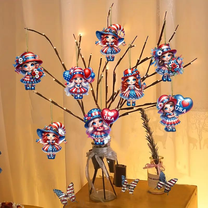 Store New Arrivals Add to Favorite View Feedback Contact Fast deliveries to the customer's home Quality customer service John Make the customers happy! 8 Pcs 4Th of July Tree Decoration Independence Day Pretty Fairy Girls Acrylic Tree Hanging Pendant Cute Cartoon Mini Patriotic Hanging Ornament Accessories for Fourth of July Party Supplies Description Celebrate Independence Day in style with our 4th of July ornaments, featuring 8 beautifully crafted acrylic hanging pendants showcasing the iconic red, white, and blue colors of the American flag Each of these Fourth of July ornaments for tree is designed to capture the spirit of freedom, featuring stunning pretty fairy girls designs that add a patriotic touch to your holiday decorations Made from high-quality acrylic, these durable patriotic ornaments for tree are lightweight and easy to hang decoration, ensuring they stand out on your tree or party decorations for years to come Perfect for a variety of uses, our 4th of July ornaments are not just for trees; they can be elegantly incorporated into centerpieces, or as part of your festive table settings for celebrations Enjoy peace of mind with our commitment to customer satisfaction; if you have any questions or concerns about our 4th of July ornaments for tree, our friendly support team is here to assist you Specification: Item Type: 4th of July Hanging Ornaments Material: Acrylic Color: As the picture shows Size: As the picture shows Quantity: 8 Pcs Note: 1.Please keep them away from children to avoid swallowing. 2.The real color of the item may be slightly different from different monitors. 3.If you have any questions or are not satisfied with our products,please feel free to contact us. We will try our best to solve your problems.We hope to get your satisfaction. Item model number 586 Color Style 11 Country of Origin China Item Weight 3.2 ounces Package Dimensions 4.76 x 3.82 x 1.73 inches ABOUT US We offer the best prices around on high quality products. Our E-store includes media such as books, movies, music and games while offering electronics, toys, sporting apparel, clothing, tools, general home, garden items and more. SHIPPING We are always working hard to ensure your package arrives as soon as possible. Please understand that some factors like weather, high postal traffic, and the performance of shipping companies are outside of our control. We offer free shipping to the lower 48 states and ship within 2 business days of payment, usually sooner. We do not accept P.O. Boxes. Please provide a physical address. For shipping outside of the continental USA, we only use eBay's Global Shipping Program. The item is shipped to KY and then sent to the rest of the world. International customers are responsible for all duties and taxes. Continue to 'check out' to calculate costs for shipping the item to your country. Messages regarding eBay's Global Shipping Program MUST be directed at eBay EXCLUSIVELY. RETURNS We offer a 30-Day Return Policy on items in which you are not completely satisfied with. You have the option of a full-refund or an exchange of the item. No returns are available on items shipped outside of the USA PAYMENT We accept PayPal. CONTACT US This page content is yet to come Please ad us to your favorite seller and visit again later Thank You CUSTOMER SATISFACTION We try our very best to make sure every customer is completely satisfied. If there's a problem, message us! We're happy to help. WE ACCEPT