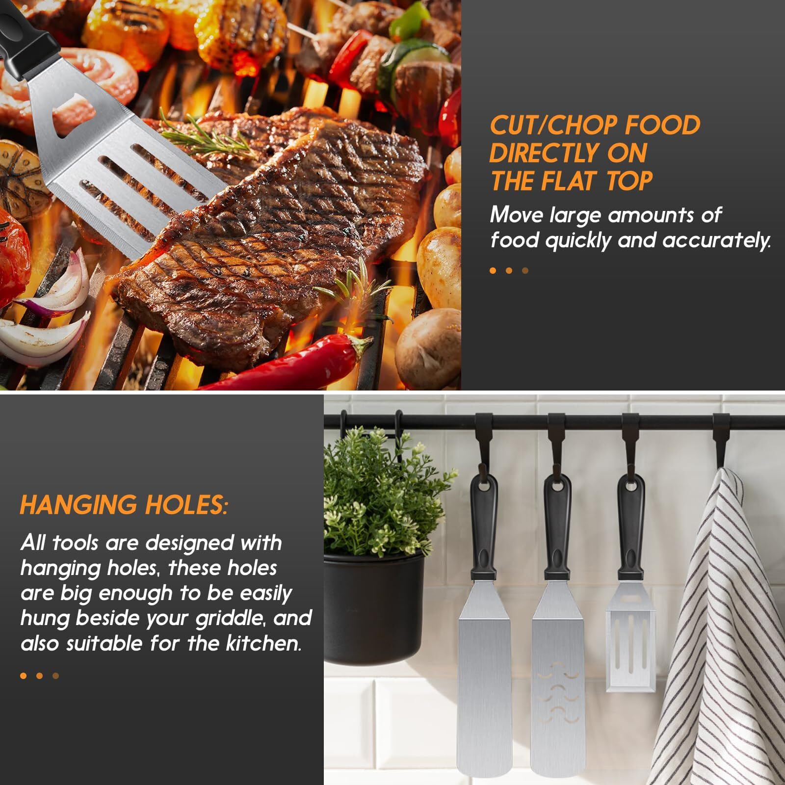 Griddle Accessories Kit, 8pcs Blackstone Accessories Kit for Blackstone and Camp Chef, Professional Griddle Accessories Kit with Spatula & Carry Bag for Great for Outdoor BBQ, Teppanyaki and Camping Premium Stainless Steel: Griddle accessories are made with stronger and thicker stainless steel. Heat-resistant and non-slip, the handle of the abs provides a comfortable grip, with hanging holes for easy storage. you can easily enjoy your grilling, camping, or cooking without worrying about your tools bending, breaking, or rusting again. Blackstone griddle accessories are dishwasher safe for quick and easy BBQ clean-up. Multipurpose Blackstone accessories kit: 2 Oversized griddle spatulas, great for flipping beef cubes, fried egg, rice, noodle, and vegetables. 1 Regular-size grill flippers/turners (can be used as a shorter spatula) with 3-sided bevel cutting edge, great for turning burgers, and pancakes and cutting bread, meat, and sausage. Must-Have Griddle Accessories: Blackstone accessories kit include 1 chopper/ scraper to dice food and scrape griddles clean. 2 squeeze bottles for liquids oil, 1 Cleaning Brush, and 1 storage bag. Blackstone accessories will please everyone at your BBQ, weekend party, or your everyday meals. Perfect Gift Choice: Beautifully designed gift box with quality packaging, which is an ideal gift choice for Father's Day, Thanksgiving, or Christmas. These practical Blackstone accessories are for most grills and are suitable for indoor and outdoor cooking. It can meet all the essentials of your daily backyard barbecue and camping activities. Whether you are in the kitchen, your backyard, or out camping. You can enjoy BBQ time with your family and friend easily. Satisfaction Customer Service: We stand by our Griddle Accessories Kit with our outstanding customer service, we aim to satisfy purchases for every customer. If you ever have a problem, please feel free to contact our customer service, we will reply within 24 hours and help you solve the problem. blackstone kit blackstone tools blackstone accessories kit blackstone griddle kit blackstone grilling accessories blackstone spatula set griddle tool kit griddle spatula set griddle utensils blackstone grills accessories flat top griddle accessories blackstone squeeze bottles outdoor griddle accessories blackstone griddle tools griddle tool set blackstone griddle spatula SHIPPING Domestic Buyers - We have confidence in our products, but if you are not fully satisfied please contact us within 30 days of purchase and you will get full refund. - We ship within 3 business days of payment, usually sooner - We offer FREE shipping on all orders! - We only ship to the lower 48 states, no APO/FPO addresses or PO Boxes allowed International buyers – please note: Import duties, taxes, and charges aren't included in the item price or postage cost. These charges are the buyer's responsibility. - Please check with your country's customs office to determine what these additional costs will be prior to bidding or buying. * Order Cancellation Policy ** You can return a product for up to 30 days from the date you purchased it. 1. The seller reserves the right to cancel the special case only due to eBay cancellation fee. 2. The decision of seller is the final. 3. The seller will respond to the cancellation request within 2 business days. Please wait for the result of cancellation. 4. In case the cancellation is not completed by some reasons, the buyer can follow the options below to get the refund. 4.1 The buyer can reject the item when it arrives. 4.2 The buyer can send the item back to the seller within 30 days If the buyer receives item (USA Shipment ONLY). The seller will provide the FREE return label to the buyer when the buyer opens " Return Item" case on eBay by using the reason as "Change my mind" ONLY. 5. When buyer has placed the order. The order will be processed and completed by automatic warehouse system within 5 minutes. In case that buyer sends the cancellation request after 5 minutes of placing the order, the request will be rejected. **Sending direct message to cancel the order is not allowed for every case.* Return Policy For the return case - If buyer would like to return the items for refund or replacement, please CONTACT SELLER to receive the free return label from seller. The refund or replacement will be processed with the tracking number of return label which is provided by seller only. The other ways of return which are not approved by seller will not be processed for the refund or replacement.