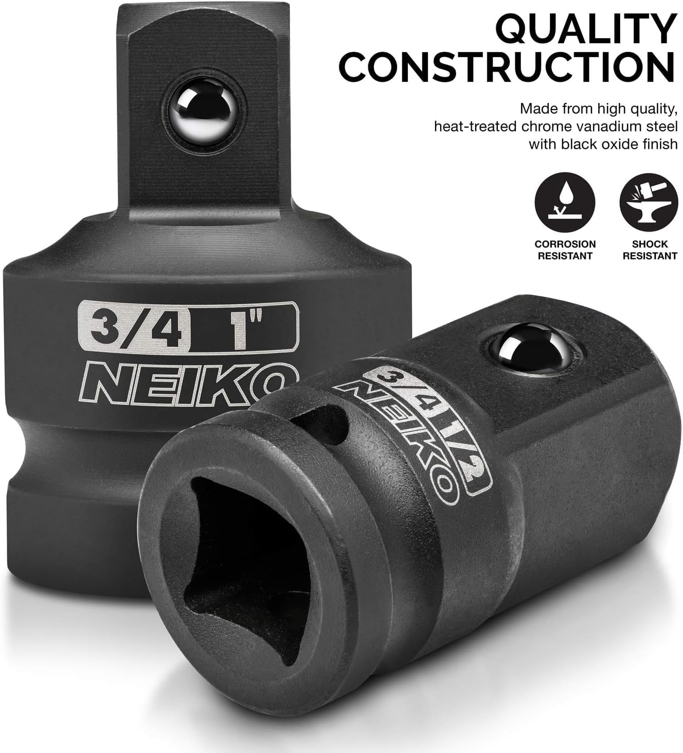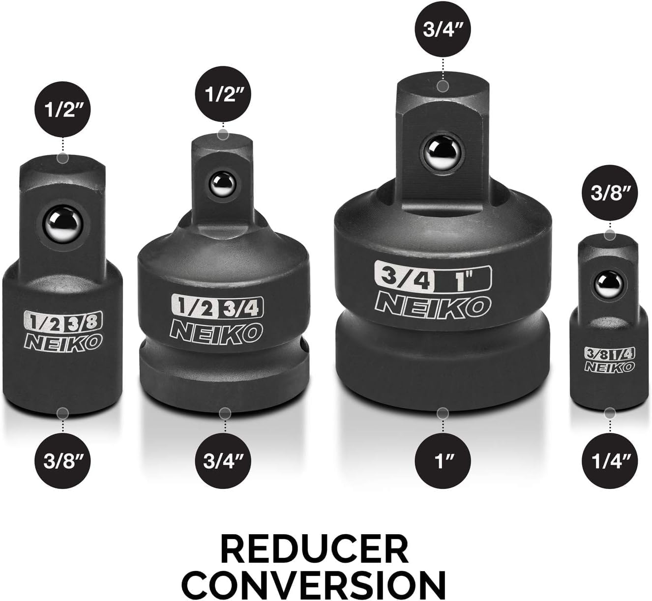 Business is our speciality NEW 30223A 8 PC Impact Socket Adapter Set, Standard SAE Size, Cr-V Steel, Impact Driver & Wrench Conversion Kit, Locking Impact Socket Adapters & Reducer Set, Ball Detent, 1/4”, 3/8”, 1/2", 3/4”, 1” FEATURES IMPACT GRADE: This impact adapter reducer set has a specific impact grade design that is made exclusively for drivers, wrenches, and ratchets to convert size up or down for your automotive needs in the garage. Square drive converter. CHROME VANADIUM STEEL: This socket adapter set is constructed of heavy duty drop forged and heat-treated chrome vanadium steel for superior strength and durability to exceed and endure in all work conditions. BLACK OXIDE COATING: The super tough black oxide coating finish on these socket drill adapters gives you a long-lasting tool set that will stand the test of time and give you the most durable performance job after job. SECURE HOLD: The superior design includes a spring-loaded ball detent that keeps your sockets locked into place and secure through holes that also allow the use of locking pins to ensure stability and supreme execution. DRIVE BIT ADAPTER: 8 Piece set includes 3/8" to 1/4" reducer, 1/2" to 3/8" reducer, 3/4" to 1/2" reducer, 1" to 3/4" reducer, 1/4" to 3/8" adapter, 3/8" to 1/2" adapter, 1/2" to 3/4" adapter, 3/4" to 1" adapter to give you all the sizes you need to smoothly transition from socket to socket. The durable NEIKO 30223A 8-piece impact socket conversion adapter and reducer set. These tools adapt to the situation on the fly to get it done. They create replacements for lost or broken sockets, expand incomplete socket sets, and allows greater flexibility for all sockets and drive tools. Ball detent securely holds sockets on the coupler. Made of the highest quality chrome vanadium steel, each piece undergoes a precise heat treating process, hardening and strengthening it for use with impact wrenches and drivers. This is a must have for any tool set, socket set, or mechanic set. Versatile set can be used on breaker bars, ratchets, cordless ratchets or impact drills. Set Includes: 4 Reducers: 3/4 in. (M) x 1 in. (F) Converter 1/2 in. (M) x 3/4 in. (F) Converter 3/8 in. (M) x 1/2 in. (F) Converter 1/4 in. (M) x 3/8 in. (F) Converter 4 Adapters: 1 in. (M) x 3/4 in. (F) Converter 3/4 in. (M) x 1/2 in. (F) Converter 1/2 in. (M) x 3/8 in. (F) Converter 3/8 in. (M) x 1/4 in. (F) Converter . Item model number 30223A Style Adapter Reducer Power Source air-powered Country of Origin Taiwan Drive System Square Batteries Included? No Measurement System inch Number of Pieces 8 Batteries Required? No Finish Steel Material Chrome Vanadium Steel Is Discontinued By Manufacturer No Item Package Quantity 1 Item Weight 2.6 pounds Head Style Hex Part Number 30223A Finish Type Steel Compatible Fastener Range 0.5 inches Global Trade Identification Number 00837013302230 Included Components Impact Adapter and Reducer Set Product Dimensions 13 x 7 x 2 inches Size 8 Piece 7.0 inches x 13.0 inches x 2.0 inches. Weight: 2.6 lb Ask us anyhting Free shipping PAYMENT We accept all payments via Ebay using Credit Cards , PAYPAL , Apple Pay and many others SHIPPING We are always working hard to ensure your package arrives as soon as possible. Please understand that some factors like weather, high postal traffic, and the performance of shipping companies are outside of our control. DELIVERY & RETURN POLICY We offer a 30-Day Return Policy on items in which you are not completely satisfied with. You have the option of a full-refund or an exchange of the item. No returns are available on items shipped outside of the USA.