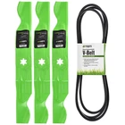 Replaces Blade OEM Part Numbers: Cub Cadet 490-110-C123, 490-110-M126, 742-04053, 742-04053A, 742-04053B, 742-04053C, 942-04053, 942-04053A, 942-04053B, 942-04053C, 942-04053H, OCC-742-04053 Replaces Belt OEM Part Numbers: Cub Cadet 754-04044, 754-04044A, 954-04044, 954-04044A, Massey Ferguson 954-04044, MTD 754-04044, 954-04044, 954-04044A, Rover 754-04044, 954-04044, 954-04044A, Troy Compatible with 50 Inch Cub Cadet RZT-22, RZT-50, RZT50KH, RZT50KW; MTD White ZT-22, Troy Bilt Mustang XP, RZT50 Blade Specs: Lift Type High Lift; Length 17.812 Inch; Width 2.375 Inch; Thickness 0.1875 Inch; Center Hole Size 6 point star Belt Specs: Length 134 Inch; Width 0.5 Inch; Material NR Rubber, Polyester Cord, Type 1 Fabric
