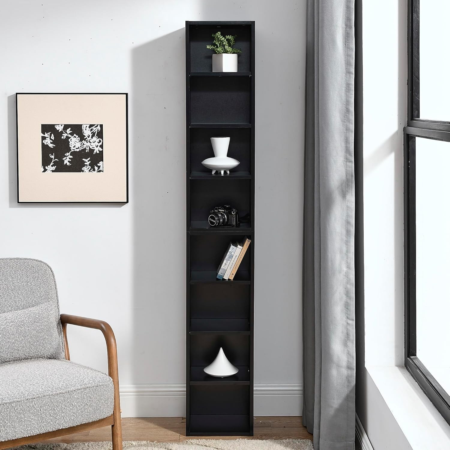 $ 50.688-Tier Slim CD DVD Storage Cabinet with Shelves, Tall Narrow Bookcase