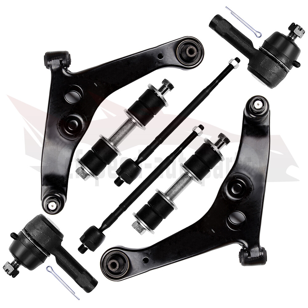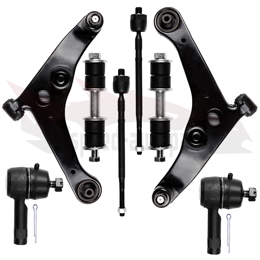 1.Notes (1).Please check the fitment chart above before payment making sure all the suspension parts listed on this page are compatible with your automobile. (2).Please refer to Moog official website before narrowing down your search so as to avoid unnecessary item not as described return requests. (3).Please contact our customer services for targeted discount after all the items are received if you have reached any targeted discount thresholds, the terms of which is at the bottom of this page. 2.Fits These Vehicles Cfspeed-autoparts 8X Front Lower Control Arms Tie Rods Sway Bar Set For 2002-06 Mitsubishi Lancer 1.Notes (1).Please check the fitment chart above before payment making sure all the suspension parts listed on this page are compatible with your automobile. (2).Please refer to Moog official website before narrowing down your search so as to avoid unnecessary item not as described return requests. (3).Please contact our customer services for targeted discount after all the items are received if you have reached any targeted discount thresholds, the terms of which is at the bottom of this page. 2. Fits These Vehicles Mitsubishi Lancer DE 2.0L 2004-2006 Mitsubishi Lancer ES 2.0L 2002-2006 Mitsubishi Lancer LS 2.0L 2002-2006 Mitsubishi Lancer OZ 2.0L 2003 -2006 Mitsubishi Lancer Ralliart 2.4L 2004-2006 Mitsubishi Lancer SE 2.0L 2006 Mitsubishi Lancer Sportback 2.4L 2004 3.Package Includes 1x Part# Front Left Lower Control Arm + Ball Joint - K620384 1x Part# Front Right Lower Control Arm + Ball Joint - K620345 2x Part# Front Inner Tie Rod Ends - EV80587 2x Part# Front Outer Tie Rod Ends - ES3704 2x Part# Front Sway Bar End Links - K90247 Ball Joint Replacement Guideline: If there is a knocking or clunking noise in the area of the front axle when the car is traveling over road bumps, potholes or curbs, then there is usually a defect in a component of the wheel suspension. Picture(A) The side of the front axle from which the (vibration) noise is emanating can already be determined during a test drive. The type of noise also already provides certain indications for maintenance regarding which components might be faulty. Picture(B) 1.Raise the vehicle and remove the front wheels. 2.To loosen the fastening screws and fixing nuts of the compression ball joint more easily, spray them with rust remover and allow to act for a few minutes. Picture(C) 3.Loosen the fastening screws of the broken ball joint on the control arm and remove the nuts. Picture(D) 4.Loosen and remove the fixing nut of the ball joint on the steering knuckle. Tip:If the ball stud rotates, hold the ball stud in place with a hexagon socket. Picture(E) 5.Remove the bad or worn ball joint from the control arm. 6.Loosen the compression ball joint on the steering knuckle using a suitable special tool. Picture(F) 7.Clean the cone connection. Tip:For better sealing and durability of the ball joint sleeve, a little silicone grease can be applied to the contact surface. Picture(G) 8.Insert new compression ball joint in the control arm and steering knuckle and tighten with new fixing nuts. 9.Reinstall front wheels. Lower the vehicle and tighten the wheel studs to the tightening torque specified by the vehicle manufacturer. 10.Measure the chassis and adjust it using the various holes on the compression ball joint if necessary. 11.Finally, carry out a test drive. Sway Bar Stabilizer Link Replacement Guideline: While driving, the following signs may indicate a faulty sway bar stabilizer link: (1).Rattling and thumping noises on rough roads. (2).Imprecise vehicle handling. (3).Stronger inclination of the vehicle during cornering. If the sway bar stabilizer link is found to be defective, it should be replaced as described below. Picture(A) 1.Raise vehicle and remove front wheels. Tip:Always check both stabilizer links and replace them in pairs if necessary. 2.Spray fastening nuts of the stabilizer link with rust remover and let act for a few minutes. Picture(B) 3.Loosen the lower fastening nut of the stabilizer link at the stabilizer and remove. Tip:If the ball stud also starts to turn, hold it with a suitable tool. 4.Press stabilizer link out of torsion bar. Picture(C) 5.Loosen the upper fastening nut of the stabilizer link at the suspension strut and remove it. Tip:If the ball stud also starts to turn, hold it with a suitable tool. Picture(D) 6.Press stabilizer link at suspension strut out of bracket. Picture(E) 7.Insert new stabilizer link at suspension strut. Picture(F) 8.Tighten stabilizer link at suspension strut to the tightening torque specified by the vehicle manufacturer. Tip:Secure the ball stud against twisting with a suitable tool. Picture(G) 9.Insert new stabilizer link at stabilizer. 10.Tighten stabilizer link at stabilizer to the tightening torque specified by the vehicle manufacturer. Tip:Secure the ball stud against twisting with a suitable tool. Picture(H) 11.Remount the front wheels. Lower the vehicle and tighten the wheel studs to the tightening torque specified by the vehicle manufacturer. Tip:Even if replacing the stabilizer link does not directly affect the chassis setting, we recommend checking the axle setting and adjusting if necessary after working on the suspension. 12.Conclude with a test drive. Tie-Rod End Replacement Guideline: If you feel a bump in the steering when driving over road bumps or curbs, this might be due to worn tie rod ends or inner tie rods. Clicking noises during sudden steering movements can also be symptoms of a defective tie rod. In order to determine the exact cause and replace the defective tie rod, the car must be elevated with a vehicle lift in order to be examined more closely. This useful tip applies to the exchange of tie rod ends and inner tie rods, which together form the so-called tie rod. Picture(A) Note: Cleanliness is extremely important when working on the power steering. Incorrect work and contamination can lead to leakage and, in the worst case, to failure of the steeri