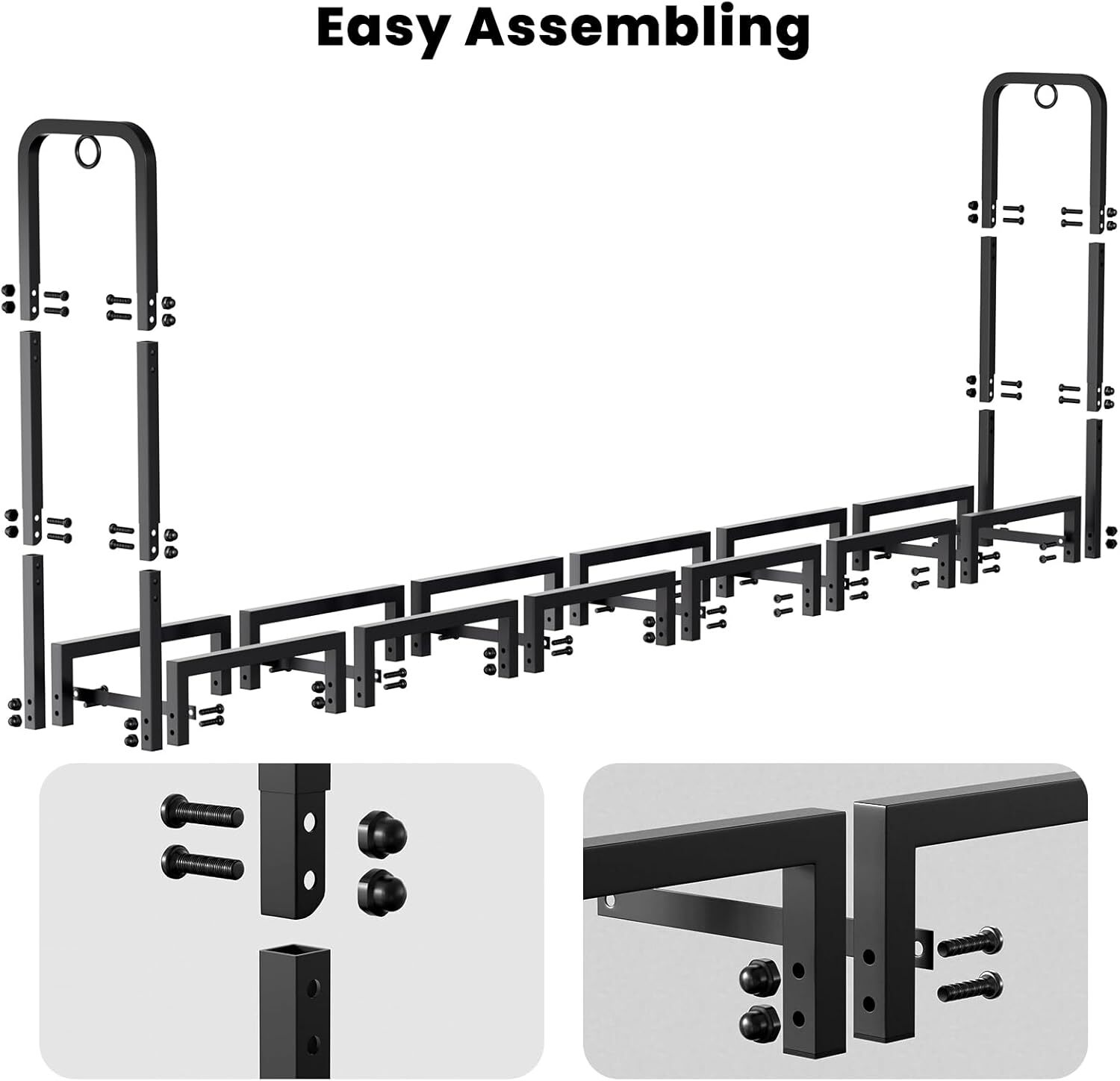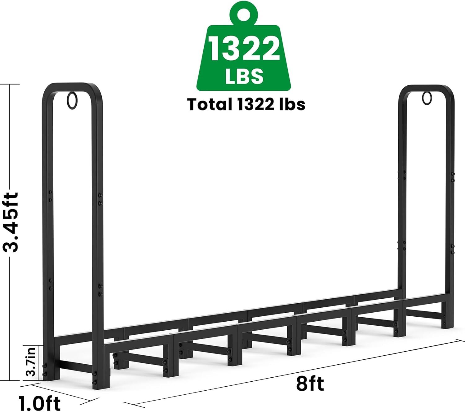 Product Description Garden Home Heavy Duty 8 feet Firewood Log Rack The firewood log rack outdoors is made of 14 support legs that are more stable, perfect for outdoor back porch, back yard deck, outside backyard fire pits, under eaves, tools shed, wood shed, inside the cabin, fireplace, indoor garage, family room, covered patio etc. Features: Made of tubular steel with powder coated finish. Neatly stacks firewood off of the ground. Heavy duty, Solid & Weather fastness. Freestanding for any hard surface storage. 14 extra solid legs with square design for stability supporting. 2 anti tip lock rings for children proofing. High capacity up to 1/4 face cord of firewood. Designed for easy assembly and prolong lifetime. Assembled Dimensions: 96"L x 12"W x 41.4"H Material: Heavy duty tubular steel Finish Type: Black power coated finish Total Weight Capacity 1322 lbs Six-section DIY splicing firewood stand Total length 8ft, can be used for six outdoor sections, or adjust the firewood holder to 1.25FT/2.5FT/3.75FT/5FT/6.25FT/7.5FT to meet your needs AMAGABELI GARDEN & HOME Heavy Duty Firewood Rack Brings Life with Warm & Keeps wood always dry Large capacity enough for long and cold winters Black paint coated finish, long service life Thickened steel pipe, more sturdy and durable 8FT Firewood Keeper Will Be Your Best Option Don't let disorganized firewood ruin your cozy nights by the fireplace. Our high-quality firewood rack is a neat and tidy firewood storage solution that looks great in any home. The sleek design of firewood holder, making it ideal for outdoor and indoor use in all seasons. On Feb 20, 2025 at 23:31:37 PST, seller added the following information: