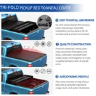 8ft Long Bed Soft 3-fold Tonneau Cover for 2002-2023 Dodge Ram 1500 2500 3500 Item Description: Fits: Compatible with 2002 Dodge Ram 1500 without Ram Box | Fleetside 8ft Compatible with 2003, 2004, 2005, 2006 Dodge Ram 1500 2500 3500 without Ram Box | Fleetside 8ft Compatible with 2007, 2008, 2009, 2010 Dodge Ram 1500 2500 3500 without Ram Box | Fleetside 8ft Compatible with 2011, 2012, 2013, 2014 Ram 1500 2500 3500 without Ram Box | Fleetside 8ft Compatible with 2015, 2016, 2017, 2018 Ram 1500 2500 3500 without Ram Box | Fleetside 8ft Compatible with 2019, 2020, 2021 2022 2023 Ram 1500 classic 2500 3500 without Ram Box | Fleetside 8ft Package include: 1x 8FT Soft Tri-fold Tonneau Cover Advantage: Quick Clamp -- Hassle-Free Installation 8 pre-set clamps, which are easily adjusted by changing the slots they stay, only can be accessed from inside. Lock your tailgate, the truck bed will be secured as a trunk. Save Energy OEDRO tonneau cover will improve your gas mileage, you can expect savings of up to 12%. Increased Security Dual tailgate paddle latches lock the tonneau cover in place when the tailgate is closed for increased security. The paddle latches can only be accessed from inside the bed. Weather Strip Included Weather stripping keeps all rain, snow, and dust out of your truck bed. For maximum protection, be sure to seal all four sides of your truck bed with weather stripping. More Display: On Feb 9, 2024 at 05:43:26 PST, seller added the following information: On Apr 24, 2024 at 13:25:49 PDT, seller added the following information: On Oct 14, 2024 at 02:11:54 PDT, seller added the following information: