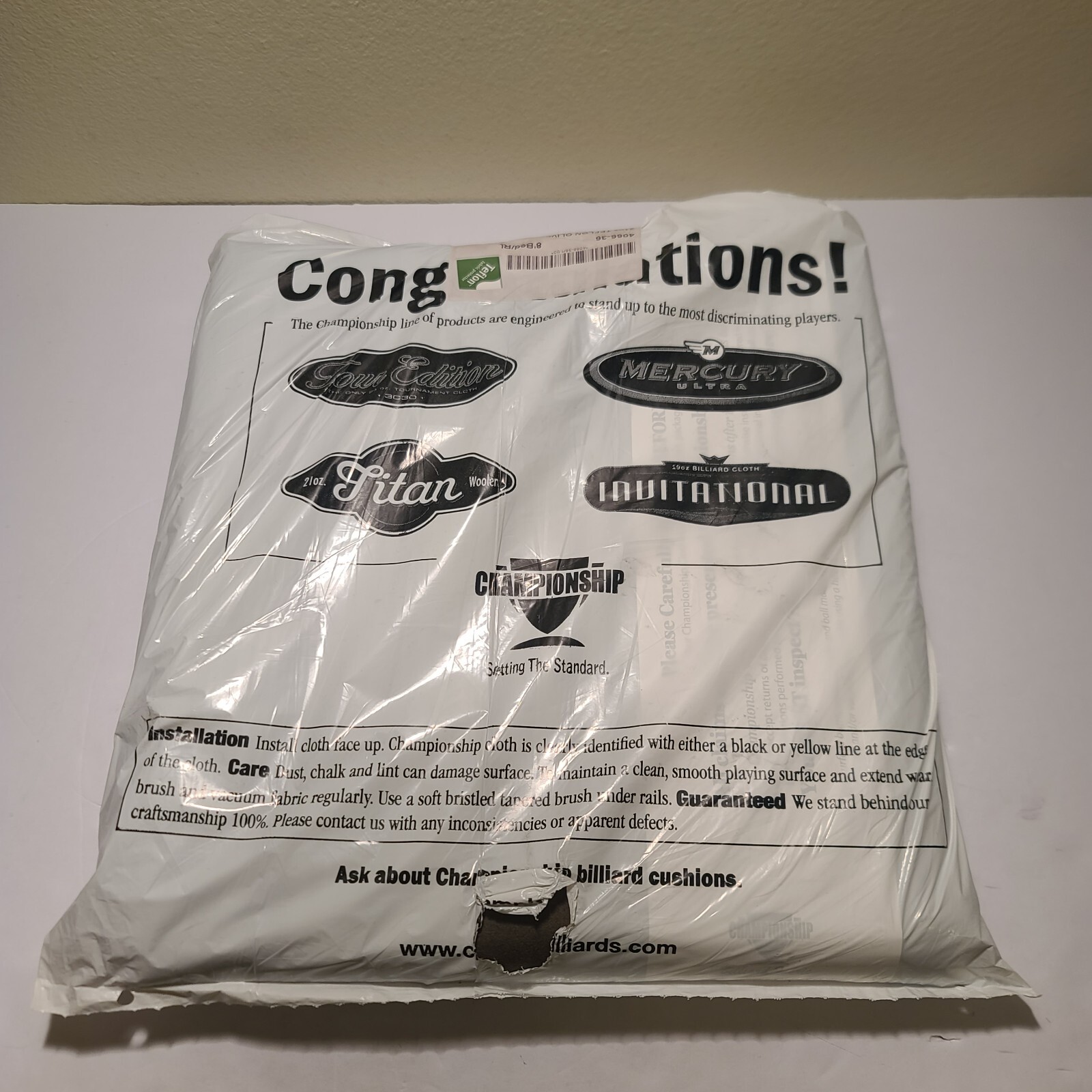8' Championship Invitational Billiard Pool Table Teflon Felt Cloth Olive Brand new in original packaging *Please view all images to see the condition* __________________________________________________________________________________________________ Thank you for viewing my listing! If you have any questions or concerns, please reach out to me directly. Shop risk-free : I offer full refunds on all orders for up to 30 days after purchase, including free return shipping . If you are unhappy with the item for any reason after purchasing, simply open a return and send it back! Have a great day, happy shopping!