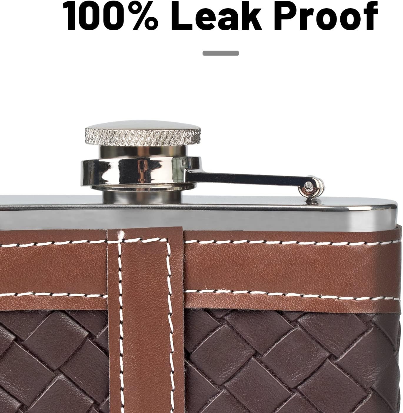 Hip Flasks for Men 8oz Leather Flask Gift Stripe Dark Brown Product Details Material: Stainless Steel Color: Leather Stripe Dark Brown 8oz Brand: LHD HOME Finish Type: Polished Shape: Kidney Item Weight: 6.4 ounces Item Volume: 1414 Cubic Centimeters Model Name: Leather Stripes Black 8oz Manufacturer: Chen Han Product Dimensions: 7.8 x 7.8 x 1.8 inches Item model number: STBK08 Perfect Gift Box :This flask set comes with everything you need. the funnel and 2 shot glasses are a handy touch,,easy to pour from.Well made and presented a lovely gift. Excellent Present:A nice thoughtful gift for some one if your after gift ideas,perfect as birthday gift, Christmas gift, housewarming gift, graduation gift, fathers day gift,weddings gift,a tasteful groomsmen gift. Food-grade 304 Stainless Steel:The hip flask is made of food-grade 304 stainless steel, safe,durable,solid build and lightweight .It's easy to clean Handy Flask :8oz whiskey flask,take some rum,perfect size for overnight trekking,travel, hiking, camping, climbing, picnic or any outdoor activities. 100% Leakproof Hip Flask:The cap is designed to be leak proof, cap is attached via a rubber strip. The cap seals tightly to make sure no vodka, whiskey, bourbon or other favorite beverage will leak out and get wasted.