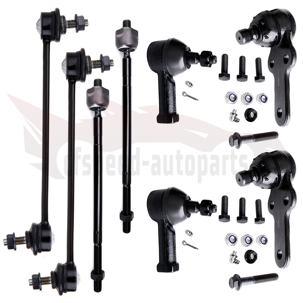 1.Fit For: 2006-2007 Ford Focus (Built After 12/06/05 Production Date) 2.Package Includes: 2x Front Left Lower Ball Joints - K80992 2x Front Stabilizer / Sway Bar End Links - K80066 2x Front Outer Tie Rod Ends - ES80580 2x Front Inner Tie Rod Ends - EV80632 3.Note Although some parts have grease fittings, other parts are factory sealed, but do not affect the fit and quality of the parts. 10 Year Warranty Please check above compatibility list to make sure it fits your vehicle. Ball Joint Cfspeed-autoparts 8x Front Ball Joint Tie Rod Sway Bars Suspension Kit For Ford Focus 2006 2007 1.Fit For: 2006-2007 Ford Focus (Built After 12/06/05 Production Date) 2.Package Includes: 2x Front Left Lower Ball Joints - K80992 2x Front Stabilizer / Sway Bar End Links - K80066 2x Front Outer Tie Rod Ends - ES80580 2x Front Inner Tie Rod Ends - EV80632 3.Note Although some parts have grease fittings, other parts are factory sealed, but do not affect the fit and quality of the parts. 10 Year Warranty Please check above compatibility list to make sure it fits your vehicle. Ball Joint Ball joints may be grouped into two classifications, load carrying and non-load carrying. Ball joints may be manufactured with forged, stamped, cold-formed, or screw-machined housings. The coil spring is seated on the control arm to which the load-carrying ball joint is attached. For example, when the coil spring is mounted between the lower control arm and the chassis, the lower ball joint is a load-carrying joint. In a torsion bar suspension, the load-carrying ball joint is mounted on the control arm to which the torsion bar is attached. A load-carrying ball joint supports the vehicle weight. Tie-Rod End Replacement Guideline: If you feel a bump in the steering when driving over road bumps or curbs, this might be due to worn tie rod ends or inner tie rods. Clicking noises during sudden steering movements can also be symptoms of a defective tie rod. In order to determine the exact cause and replace the defective tie rod, the car must be elevated with a vehicle lift in order to be examined more closely. This useful tip applies to the exchange of tie rod ends and inner tie rods, which together form the so-called tie rod. Picture(A) Note: Cleanliness is extremely important when working on the power steering. Incorrect work and contamination can lead to leakage and, in the worst case, to failure of the steering assistance. 1.Lift the vehicle and dismount the front axle wheels. 2.Spray the fastening nut of the tie rod end with rust remover and leave it on for a few minutes. Picture(B) 3.Dismount the front underride guard. Picture(C) 4.Loosen the fastening nut from the tie rod and remove it completely. 5.Remove the tie rod end from the steering knuckle using an appropriate ball joint separator. Picture(D) 6.Remove the clamp of the bellow on the steering gear. 7.Push the bellow towards the tie rod end. Picture(E) 8.Unscrew the inner tie rod from the rack. 9.Clean the sealing face of the bellow at the steering gear. Picture(F) 10.Clean the lug of the rubber contact surface of the ball joint in the steering knuckle. Note:Always use new self-locking nuts and bolts for a reliable repair. 11.Screw the new inner tie rod into the rack and tighten it with the tightening torque that has been specified by the vehicle manufacturer. Picture(G) 12.Mount the bellow and close the clamps with the appropriate special tool. Note:Incorrect mounting of the bellow can lead to corrosion of the rack: the steering gear starts leaking which can lead to a failure in the steering assistance. Picture(H) 13.Secure the ball joint in the steering knuckle and mount the nut. Please observe the tightening torque suggested by the vehicle manufacturer. Note:During mounting, the ball stud should not turn within the ball joint. This can cause damage inside the ball joint and can lead to early failure. Tip:Secure the ball stud against twisting with a suitable tool. Picture(I) 14.Mount the front underride guard. 15.Mount the front wheels and tighten them with the tightening torque recommended by the vehicle manufacturer. 16.Align the wheels and adjust them if necessary. Observe the vehicle manufacturer specifications. 17.Perform a test drive. Note:When performing the test drive, pay special attention to the handling while cornering and listen for possible noise emission. Sway Bar Stabilizer Link Replacement Guideline: While driving, the following signs may indicate a faulty sway bar stabilizer link: (1).Rattling and thumping noises on rough roads. (2).Imprecise vehicle handling. (3).Stronger inclination of the vehicle during cornering. If the sway bar stabilizer link is found to be defective, it should be replaced as described below. Picture(A) 1.Raise vehicle and remove front wheels. Tip:Always check both stabilizer links and replace them in pairs if necessary. 2.Spray fastening nuts of the stabilizer link with rust remover and let act for a few minutes. Picture(B) 3.Loosen the lower fastening nut of the stabilizer link at the stabilizer and remove. Tip:If the ball stud also starts to turn, hold it with a suitable tool. 4.Press stabilizer link out of torsion bar. Picture(C) 5.Loosen the upper fastening nut of the stabilizer link at the suspension strut and remove it. Tip:If the ball stud also starts to turn, hold it with a suitable tool. Picture(D) 6.Press stabilizer link at suspension strut out of bracket. Picture(E) 7.Insert new stabilizer link at suspension strut. Picture(F) 8.Tighten stabilizer link at suspension strut to the tightening torque specified by the vehicle manufacturer. Tip:Secure the ball stud against twisting with a suitable tool. Picture(G) 9.Insert new stabilizer link at stabilizer. 10.Tighten stabilizer link at stabilizer to the tightening torque specified by the vehicle manufacturer. Tip:Secure the ball stud against twisting with a suitable tool. Picture(H) 11.Remount the front wheels. Lower the vehicle and tighten the wheel studs to the tightening to