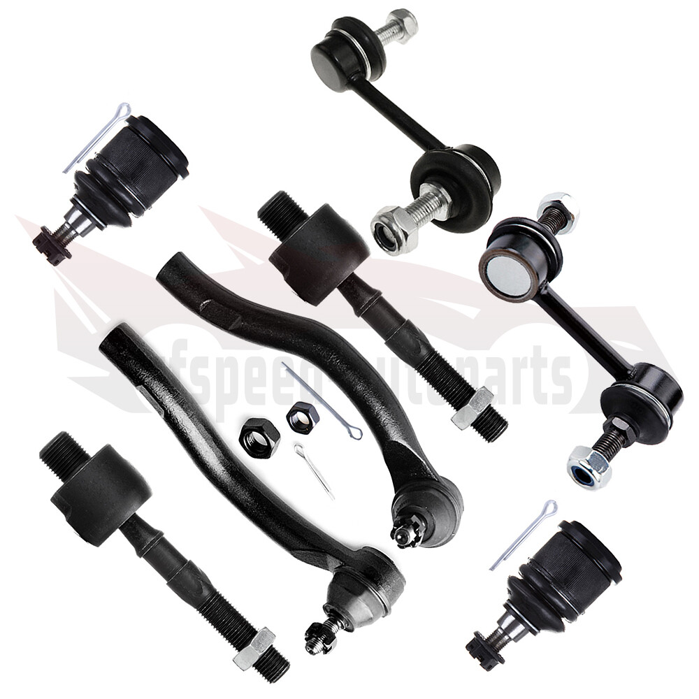 1.Fit For: 2004-2008 Acura TSX 2003-2007 Honda Accord 2.Package Includes: 2x Front Lower Ball Joint -K802281x Front Sway Bar End Link - Driver Side -K90456 2x Front Inner Tie Rod End -EV80210 1x Front Outer Tie Rod End - Passenger Side -ES80287 1x Front Outer Tie Rod End - Driver Side -ES80288 1x Front Sway Bar End Link - Passenger Side -K90457 Notes (1).Please check the fitment chart above before payment making sure all the suspension parts listed on this page are compatible with your automobile. (2).Please refer to Moog official website before narrowing down your search so as to avoid unnecessary item not as described return requests. 8pcs Front Lower Ball Joints Steering Sway Bar Tie Rod For 2004-2008 Acura TSX 1.Fit For: 2004-2008 Acura TSX 2003-2007 Honda Accord 2.Package Includes: 2x Front Lower Ball Joint -K802281x Front Sway Bar End Link - Driver Side -K90456 2x Front Inner Tie Rod End -EV80210 1x Front Outer Tie Rod End - Passenger Side -ES80287 1x Front Outer Tie Rod End - Driver Side -ES80288 1x Front Sway Bar End Link - Passenger Side -K90457 Notes (1).Please check the fitment chart above before payment making sure all the suspension parts listed on this page are compatible with your automobile. (2).Please refer to Moog official website before narrowing down your search so as to avoid unnecessary item not as described return requests. (3).Please contact our customer services for targeted discount after all the items are received if you have reached any targeted discount thresholds, the terms of which is at the bottom of this page. If you are interested with any other suspension parts, please click and save our store . Ball Joint Replacement Guideline: If there is a knocking or clunking noise in the area of the front axle when the car is traveling over road bumps, potholes or curbs, then there is usually a defect in a component of the wheel suspension. Picture(A) The side of the front axle from which the (vibration) noise is emanating can already be determined during a test drive. The type of noise also already provides certain indications for maintenance regarding which components might be faulty. Picture(B) 1.Raise the vehicle and remove the front wheels. 2.To loosen the fastening screws and fixing nuts of the compression ball joint more easily, spray them with rust remover and allow to act for a few minutes. Picture(C) 3.Loosen the fastening screws of the broken ball joint on the control arm and remove the nuts. Picture(D) 4.Loosen and remove the fixing nut of the ball joint on the steering knuckle. Tip:If the ball stud rotates, hold the ball stud in place with a hexagon socket. Picture(E) 5.Remove the bad or worn ball joint from the control arm. 6.Loosen the compression ball joint on the steering knuckle using a suitable special tool. Picture(F) 7.Clean the cone connection. Tip:For better sealing and durability of the ball joint sleeve, a little silicone grease can be applied to the contact surface. Picture(G) 8.Insert new compression ball joint in the control arm and steering knuckle and tighten with new fixing nuts. 9.Reinstall front wheels. Lower the vehicle and tighten the wheel studs to the tightening torque specified by the vehicle manufacturer. 10.Measure the chassis and adjust it using the various holes on the compression ball joint if necessary. 11.Finally, carry out a test drive. Sway Bar Stabilizer Link Replacement Guideline: While driving, the following signs may indicate a faulty sway bar stabilizer link: (1).Rattling and thumping noises on rough roads. (2).Imprecise vehicle handling. (3).Stronger inclination of the vehicle during cornering. If the sway bar stabilizer link is found to be defective, it should be replaced as described below. Picture(A) 1.Raise vehicle and remove front wheels. Tip:Always check both stabilizer links and replace them in pairs if necessary. 2.Spray fastening nuts of the stabilizer link with rust remover and let act for a few minutes. Picture(B) 3.Loosen the lower fastening nut of the stabilizer link at the stabilizer and remove. Tip:If the ball stud also starts to turn, hold it with a suitable tool. 4.Press stabilizer link out of torsion bar. Picture(C) 5.Loosen the upper fastening nut of the stabilizer link at the suspension strut and remove it. Tip:If the ball stud also starts to turn, hold it with a suitable tool. Picture(D) 6.Press stabilizer link at suspension strut out of bracket. Picture(E) 7.Insert new stabilizer link at suspension strut. Picture(F) 8.Tighten stabilizer link at suspension strut to the tightening torque specified by the vehicle manufacturer. Tip:Secure the ball stud against twisting with a suitable tool. Picture(G) 9.Insert new stabilizer link at stabilizer. 10.Tighten stabilizer link at stabilizer to the tightening torque specified by the vehicle manufacturer. Tip:Secure the ball stud against twisting with a suitable tool. Picture(H) 11.Remount the front wheels. Lower the vehicle and tighten the wheel studs to the tightening torque specified by the vehicle manufacturer. Tip:Even if replacing the stabilizer link does not directly affect the chassis setting, we recommend checking the axle setting and adjusting if necessary after working on the suspension. 12.Conclude with a test drive. Tie-Rod End Replacement Guideline: If you feel a bump in the steering when driving over road bumps or curbs, this might be due to worn tie rod ends or inner tie rods. Clicking noises during sudden steering movements can also be symptoms of a defective tie rod. In order to determine the exact cause and replace the defective tie rod, the car must be elevated with a vehicle lift in order to be examined more closely. This useful tip applies to the exchange of tie rod ends and inner tie rods, which together form the so-called tie rod. Picture(A) Note: Cleanliness is extremely important when working on the power steering. Incorrect work and contamination can lead to leakage and, in the worst case, to failure of the steering assistance