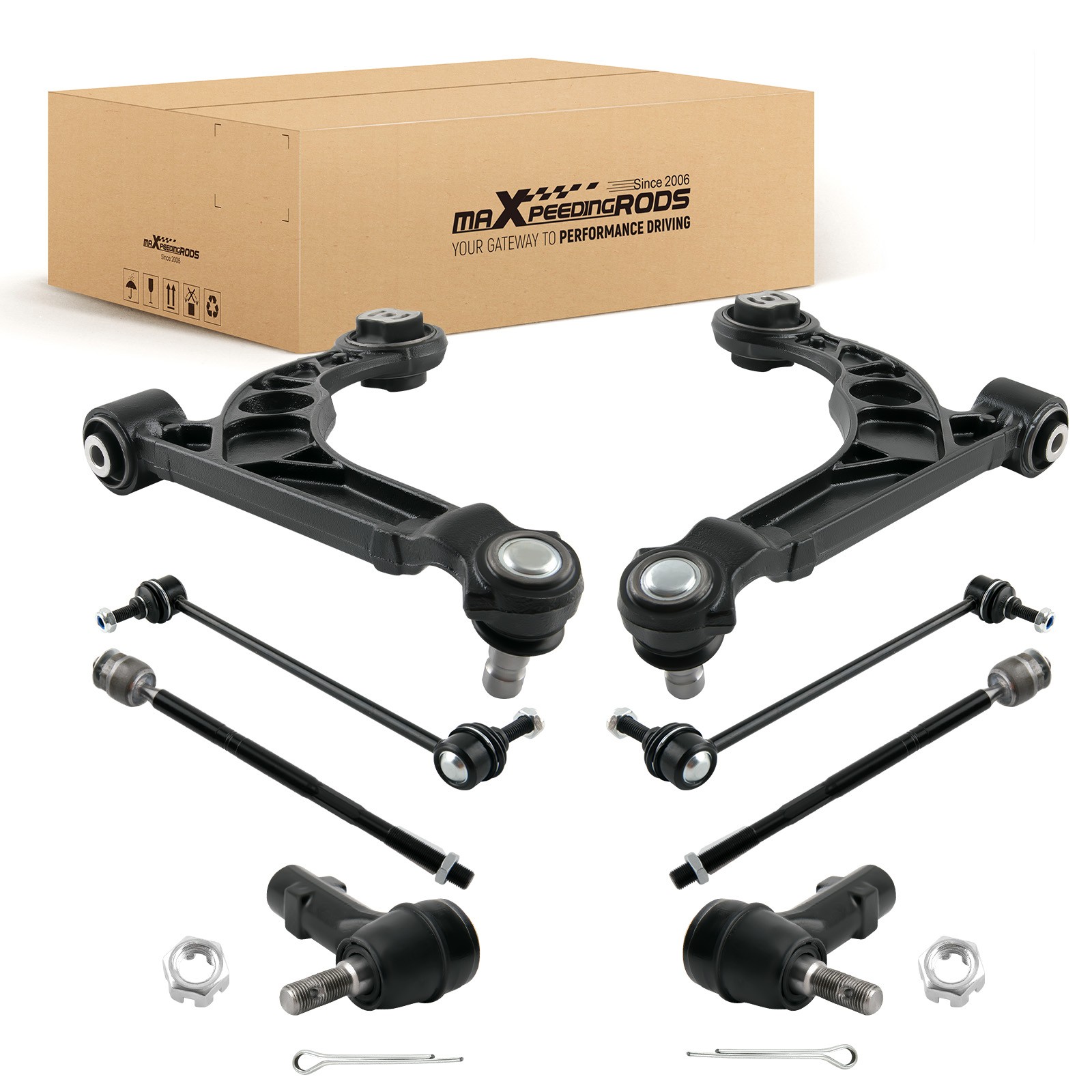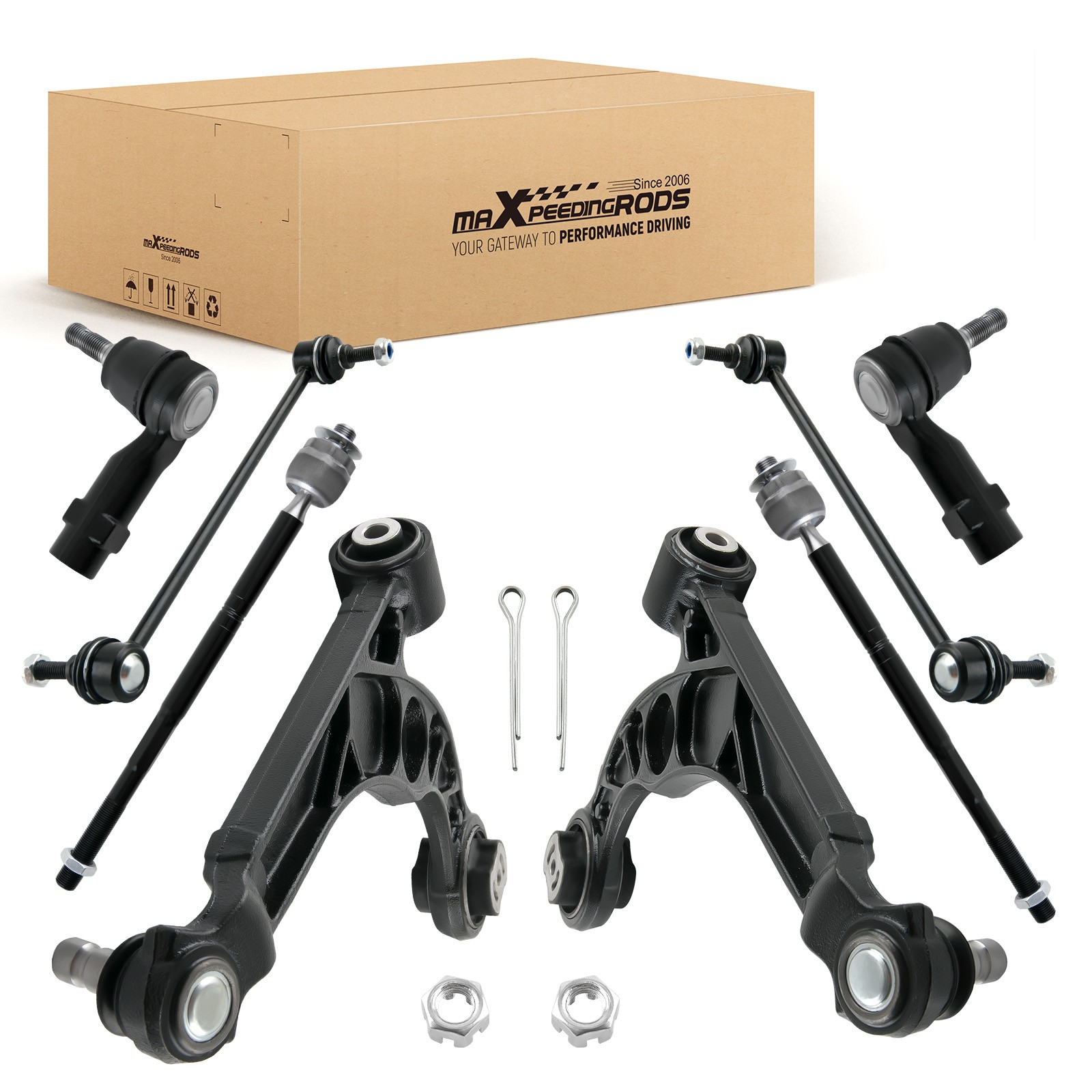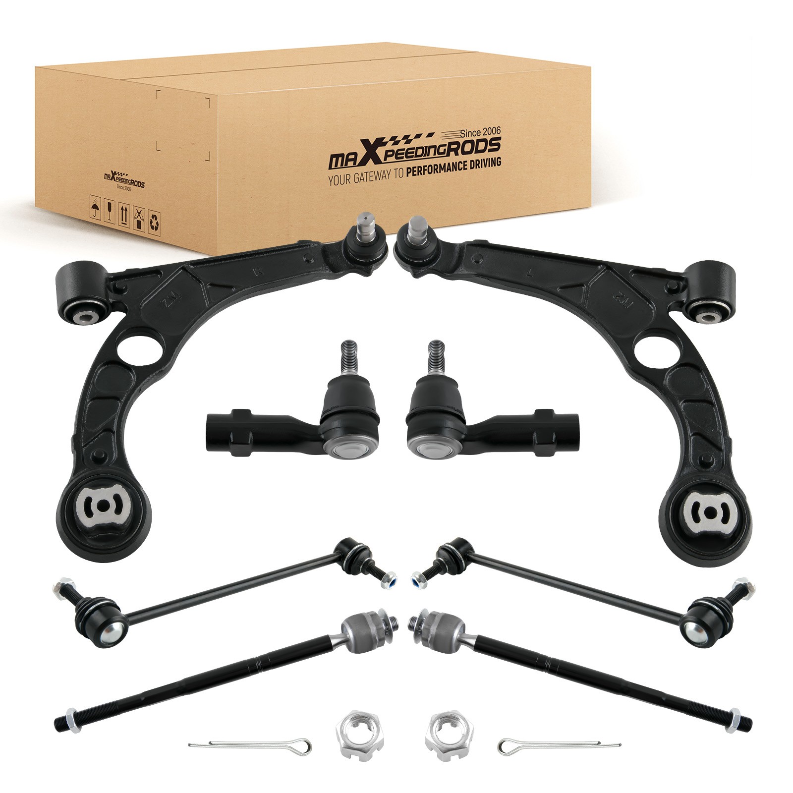 Application: For Chrysler 200 2015 - 2017 All Models For Dodge Dart 2013 - 2016 All Models Package Includes: 1x Front Lower Control Arm Assembly - Driver Side - MS251201 1x Front Lower Control Arm Assembly - Passenger Side - MS251202 2x Front Sway Bar End Link - Driver and PassengerSide - K750691 1x Outer Tie Rod End - Driver Side - ES801129 1x Outer Tie Rod End - Passenger Side - ES801128 2x Inner Tie Rod Ends - EV801132 OE/Part number: MS251201, MS251202, ES801128, ES801129, EV801132 68185502AB, 68185502AC, 68185503AB, 68185503AC 68186603AB, 68164072AA, 68164072AB Note: * Please feel free to contact us for whatever we can help via eBay message. * Instruction is not included. Professional installation is highly recommended. MXR04FXJT