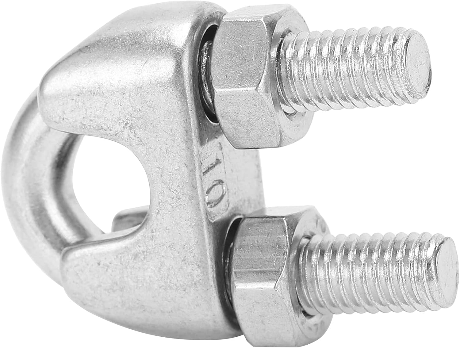 【ATTRACTIVE】: Consists of a U‑shaped bolt, a forged saddle and two nuts. Insert the two layers of steel wire ropes into the U‑shaped bolts and clamp them for a firm connection. The non‑slip thread in the middle of the saddle effectively increases friction. 【TOP QUALITY】: Using 304 stainless steel material, rugged, rust‑proof, anti‑, which has a polished appearance and no burrs, bringing a pleasant and relaxing experience. 【WIDELY USE】: Can be installed in outdoor equipments, suitable for 3/8 inch diameter wire rope or cables. 【FINE WORKMANSHIP】: The thread is deep and strong, and the force is even in use. Long‑term use is not easy to slip, strong and . 【SMART DESIGN】: Widely used to fix patio furniture, awnings, floating ceilings, safety pipes, anchor posts, fence windows, clothes lines, banners, anchors and fitness equipment, etc. Product Description Wire Rope Cable Clip Clamp, 8pcs 3/8 Inch M10 Stainless Steel Wire Rope Cable Clip Clamp U Bolt Saddle Fastener Rowing Supplies 3/8 Clip Clamp Specification: Item Type: Wire Rope Cable Clip Clamp Product Model: M10 (for 10mm / 0.4in wire rope) Material: Stainless Steel Product Color: As Pictures Shown Product Weight: Approx. 504g / 17.8oz Product Description: 1. Stainless steel precision casting parts, anti-rust, -resistant, durable. 2. Purpose: Used for wire rope, cable, etc. Package List: 8 x Wire Rope Cable Clip Clamp ATTRACTIVE: Consists of a U‑shaped bolt, a forged saddle and two nuts. Insert the two layers of steel wire ropes into the U‑shaped bolts and clamp them for a firm connection. The non‑slip thread in the middle of the saddle effectively increases friction. TOP QUALITY: Using 304 stainless steel material, rugged, which has a polished appearance, bringing a pleasant and relaxing experience. WIDELY USE: Can be installed in outdoor equipments, suitable for 3/8 inch diameter wire rope or cables. FINE WORKMANSHIP: The thread is deep and strong, and the force is even in use. Long‑term use is not easy to slip, strong and safe. SMART DESIGN: Widely used to fix patio furniture, awnings, floating ceilings, safety pipes, anchor posts, fence windows, clothes lines, banners, anchors and fitness equipment, etc.