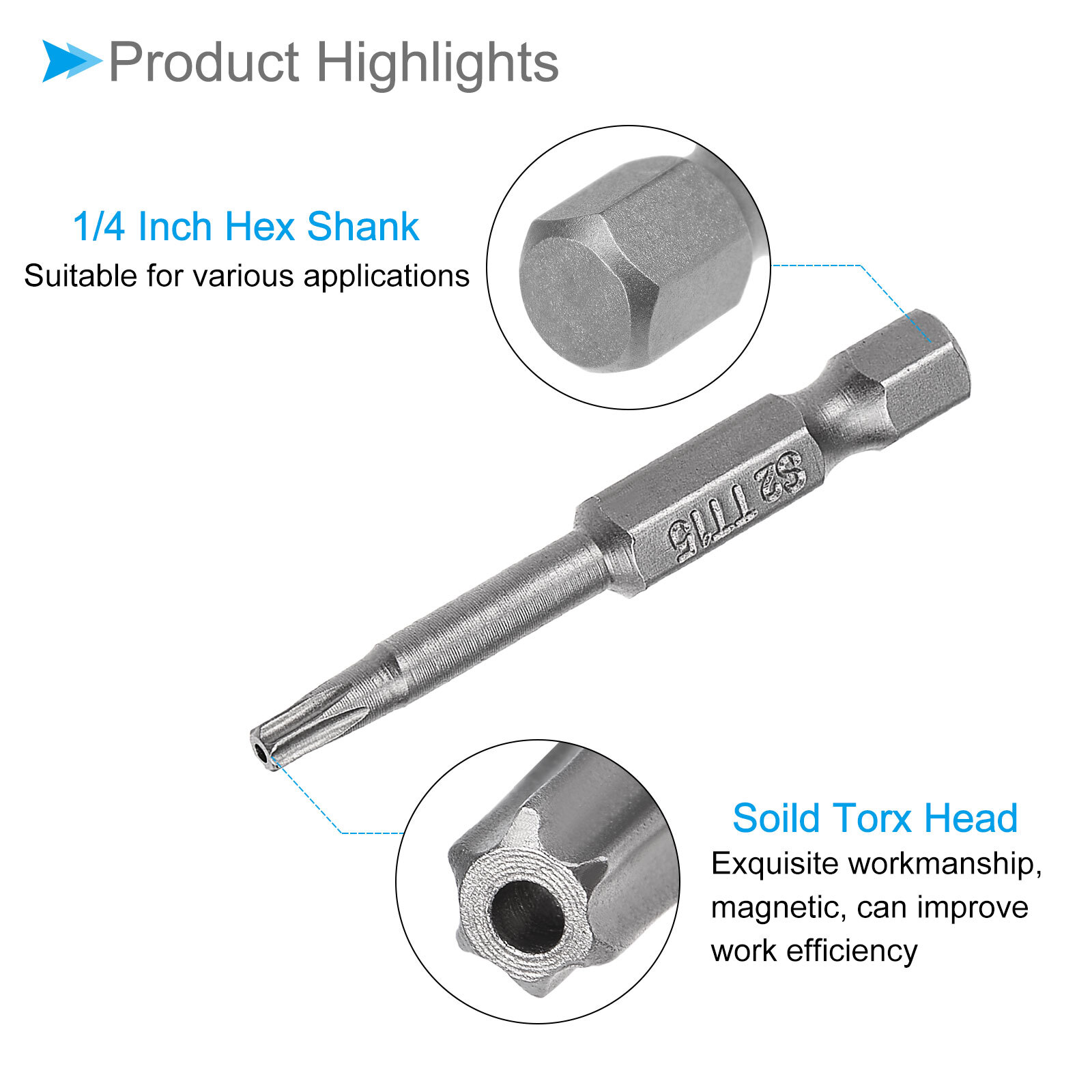 Document Attributes: *Screwdriver Bit Type: T15*Total Length: 50mm / 2 inch*Surface Treatment: Sandblasted*Material: S2What Is Included:* 8 Pieces x Torx Head Screwdriver BitsApplications & Features: -The screwdriver bit is made of S2 steel, which is wear-resistant and impact-resistant, with a hardness of up to 58HRC, and has been sandblasted and surface treated for durability.-These torx screwdriver bits feature a magnetic design that allows them to easily attract and hold screws. This feature ensures convenient installation by securely holding the screw in place before and after fastening, preventing accidental drops or misalignment.Useful Tips:-When using the torx head screwdriver bit, ensure a proper fit with the screw head to prevent stripping or damage. Apply appropriate pressure and torque to avoid over-tightening or under-tightening. Inspect the bit regularly for any signs of wear or deformation and replace if necessary. 8pcs T15 Torx Head Screwdriver Bit 2" Long 1/4" Hex Shank Magnetic Drill Driver Attributes: *Screwdriver Bit Type: T15 *Total Length: 50mm / 2 inch *Surface Treatment: Sandblasted *Material: S2 What Is Included: * 8 Pieces x Torx Head Screwdriver Bits Applications & Features: -The screwdriver bit is made of S2 steel, which is wear-resistant and impact-resistant, with a hardness of up to 58HRC, and has been sandblasted and surface treated for durability. -These torx screwdriver bits feature a magnetic design that allows them to easily attract and hold screws. This feature ensures convenient installation by securely holding the screw in place before and after fastening, preventing accidental drops or misalignment. Useful Tips: -When using the torx head screwdriver bit, ensure a proper fit with the screw head to prevent stripping or damage. Apply appropriate pressure and torque to avoid over-tightening or under-tightening. Inspect the bit regularly for any signs of wear or deformation and replace if necessary. Hot Item Payment 1.We accept eBay payment . 2.Payment must be received within 7 business days of auction closing. Shipping 1.We ship to your eBay or Paypal address. Please make sure your eBay and Paypal address is correct before you pay. 2.Items will be shipped within 1-3 business day when we received payment. 3.Delivery time depends on destination and other factors. Description Policy 8pcs T15 Torx Head Screwdriver Bit 2" Long 1/4" Hex Shank Magnetic Drill Driver Attributes: *Screwdriver Bit Type: T15 *Total Length: 50mm / 2 inch *Surface Treatment: Sandblasted *Material: S2 What Is Included: * 8 Pieces x Torx Head Screwdriver Bits Applications & Features: -The screwdriver bit is made of S2 steel, which is wear-resistant and impact-resistant, with a hardness of up to 58HRC, and has been sandblasted and surface treated for durability. -These torx screwdriver bits feature a magnetic design that allows them to easily attract and hold screws. This feature ensures convenient installation by securely holding the screw in place before and after fastening, preventing accidental drops or misalignment. Useful Tips: -When using the torx head screwdriver bit, ensure a proper fit with the screw head to prevent stripping or damage. Apply appropriate pressure and torque to avoid over-tightening or under-tightening. Inspect the bit regularly for any signs of wear or deformation and replace if necessary. Hot Item Payment 1.We accept eBay payment . 2.Payment must be received within 7 business days of auction closing. Shipping 1.We ship to your eBay or Paypal address. Please make sure your eBay and Paypal address is correct before you pay. 2.Items will be shipped within 1-3 business day when we received payment. 3.Delivery time depends on destination and other factors.
