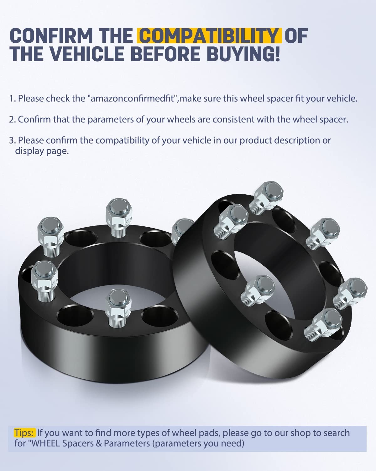8x170 Wheel Spacers Compatible for F-350 1999-2004 for F-250 Super Duty 2005-2016 for F-350 Super Duty 2005-2016, 2Pcs 2 inch 8 Lug Wheel Spacers with Studs 14x2 & Hub Bore 125mm About this item 1、8x170 Wheel Spacers Compatible List: The 8 lug wheel spacers fit for 2000-2002 for Excursion 1999-2004 for F-250 2005-2016 for F-250 Super Duty 1999-2004 for F-350 2005-2016 for F-350 Super Duty . Please refer to picture or description or "your garage" for more details. 2、8 lug Wheel Spacers Parameters: 2pcs 2" Thickness | 8x170 Bolt Pattern | 125mm Hub Bore | 14x2.0 Threaded Studs/Nuts.(Notice: Because our products are universal, if you have the problem of too long screw during installation, please cut off the excess). 3、Wheel Spacers Functions: 1)Increasing the extra gap between tire and vehicle hub assembly,improving the vehicle's performance in terms of handling and traction ,such as improve flexibility when turning.2)Lowering the center of gravity,benefit for keeping stability at a high speed.3) Avoid rubbing on the sway bar when install larger tires. 4、Premium Material: Wheel spacers adapters are made from solid blocks of T6 aircraft-grade aluminum to keep them lightweight but highly durable and strong; And the lug nuts was made of carbon steel with 10.9 grade,not easy to break/crack or rustproof. 5、Easy Installation: Conplete Wheel spacers set, includes all the necessary bolts and lug nuts for a installation.Wheel spacers are easy install and without special tools.Taper seat of the bottom makes spacers fit the hub perfectly, reducing vibration in a high speed and installing easier. Free Shipping to Most US area! Please note that Certain automotive parts may be subject to regulatory restrictions in the state of California (CA), which can prevent us from shipping these items to addresses within CA. Destinations including Puerto Rico (PR), U.S. Virgin Islands (VI), Guam (GU), Northern Mariana Islands (MP), (AS) , (AK) ... are considered U.S. territories but may be subject to extended delivery timelines and additional shipping fees due to their remote locations. We encourage customers placing orders to these areas to contact us prior to completing your purchase, so we can confirm shipping availability and any potential surcharges. Thank you for your understanding. On Feb 5, 2026 at 08:19:30 PST, seller added the following information: