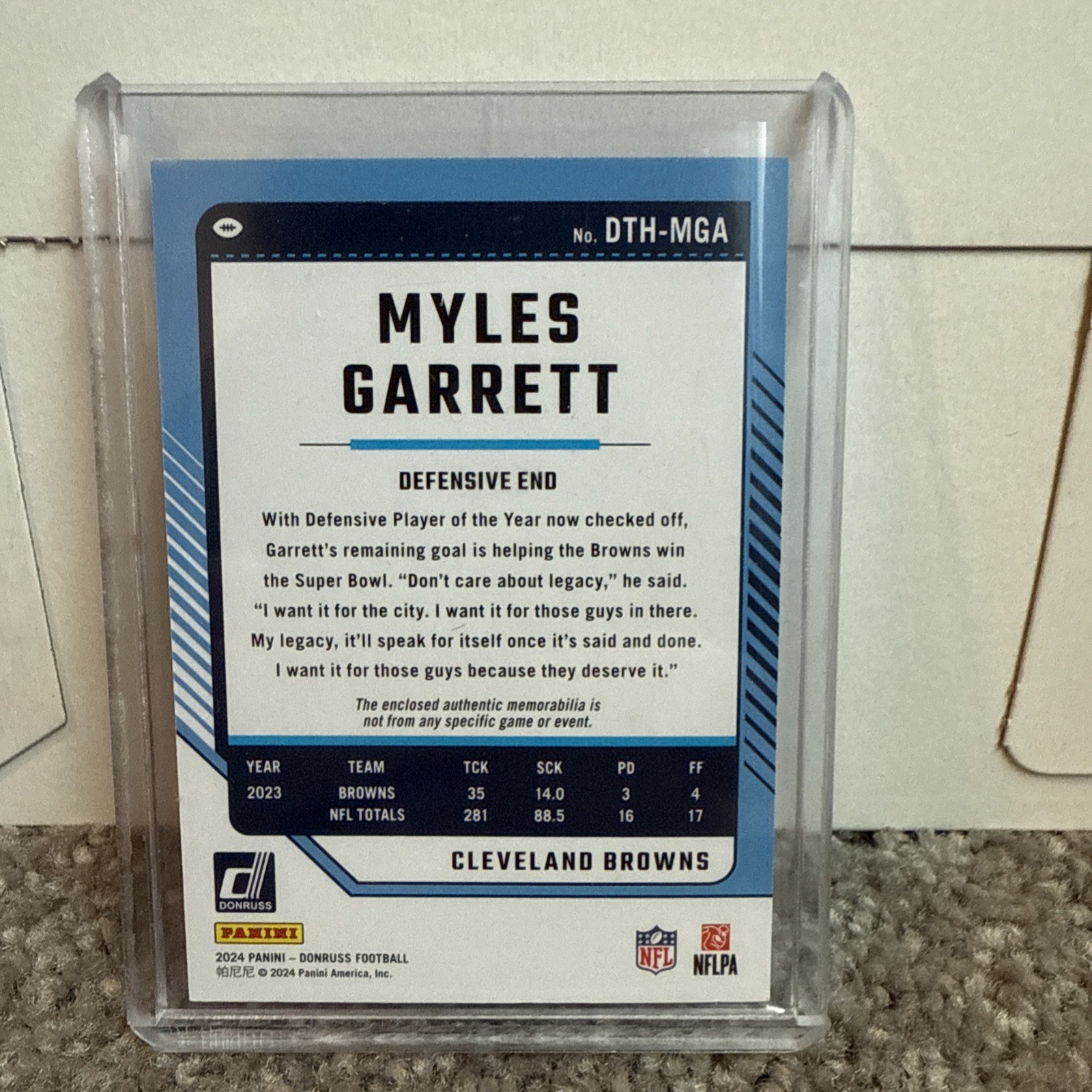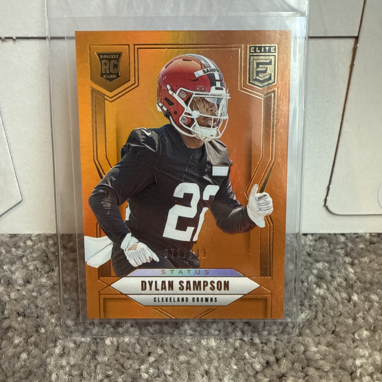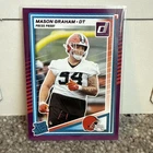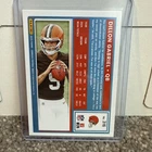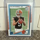 2025 Donruss Elite - Dylan Sampson Orange Metallic *numbered 071/849* 2025 Donruss Rated Rookie Dillon Gabriel 2024 Donruss Threads - Myles Garrett Patch 2025 Donruss Rated Rookie Mason Graham Purple Press Proof 2020 Select Silver Prism Jedrick Wills 2023 Dorian Thompson Zenith Rookie 2024 Amari Cooper Artistry in Motion 2024 Jamari Thrash Mosaic Rookie 2024 Michael Hall Jr. Rookie The product is a lot of 5 standard-sized 2025 Cleveland Browns rookie trading cards, featuring players like Dillon Gabriel and Myles Garrett. It also includes a NUMBERED variant for Dylan Sampson. These original cards are manufactured by Panini and are made of card stock. Each card is in English and represents the National Football League (NFL) sport of football. The cards are non-autographed and are not vintage reprints. This lot is a valuable addition to any football card collection, especially for fans of the Cleveland Browns.