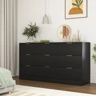 🌟 Modern 9-Drawer Dresser: Blend Style & Max Storage Elevate your home decor with this stunning black 9-drawer dresser—featuring elegant wavy-patterned drawer panels, sleek golden metal handles, and a timeless minimalist design that seamlessly complements any decor style. At 63" wide, this large chest of drawers isn’t just a storage solution—it’s a focal point that adds sophistication to your primary living space while reflecting your unique taste. 📦 Spacious Deep Drawer Storage Equipped with 9 extra-deep, roomy drawers, this dresser offers abundant storage to tidy up your home essentials. Perfect for organizing clothing, bedding, linens, accessories, books, or miscellaneous items—say goodbye to clutter and hello to a neat, organized space. The extra-large 63" top surface provides the ideal platform for displaying photo frames, potted plants, decorative vases, lamps, or even using as a stylish TV stand in your living room. 🏡 Multi-Purpose Versatility for Every Room Designed to adapt to all your storage needs, this versatile dresser fits seamlessly in: Bedroom: Use as a full-size dresser for clothing and bedding storage Living Room: Serve as a storage console, media stand, or display cabinet Hallway/Entryway: Keep keys, bags, mail, and shoes organized Closet: Maximize wardrobe storage with additional drawer space Primary Living Space: Enhances modern, contemporary, or classic decor styles 🛠️ Easy Assembly & Durable Construction Crafted from high-quality particle board, this dresser ensures long-lasting sturdiness and reliable use. Assembly is a breeze with the included detailed, step-by-step illustrated instructions—follow along to enjoy the satisfaction of building your own furniture. No complex tools or prior experience needed! ✨ Product Specifications Dimension Type Details Assembled Length 63.00 inches Assembled Width 15.74 inches Assembled Height 30.31 inches Product Weight 126.54 lbs Package Length 68.50 inches Package Width 20.47 inches Package Height 7.09 inches Package Weight 129.85 lbs Color Black Material Particle Board Drawer Panels Wavy Pattern Design Handles Golden Metal 🛡️ Trusted Quality Guarantee 1-Year Manufacturer Warranty : We stand firmly behind our product’s quality. Enjoy peace of mind with a 1-year warranty covering manufacturing defects. 30-Day Free Return & Exchange : Your satisfaction is our top priority. If you’re not 100% happy with your purchase, return it within 30 days for a full refund or free exchange—no questions asked! Upgrade your home storage with this stylish, extra-large 9-drawer dresser—where modern design meets unbeatable functionality. Order today and transform your space into an organized, elegant haven!