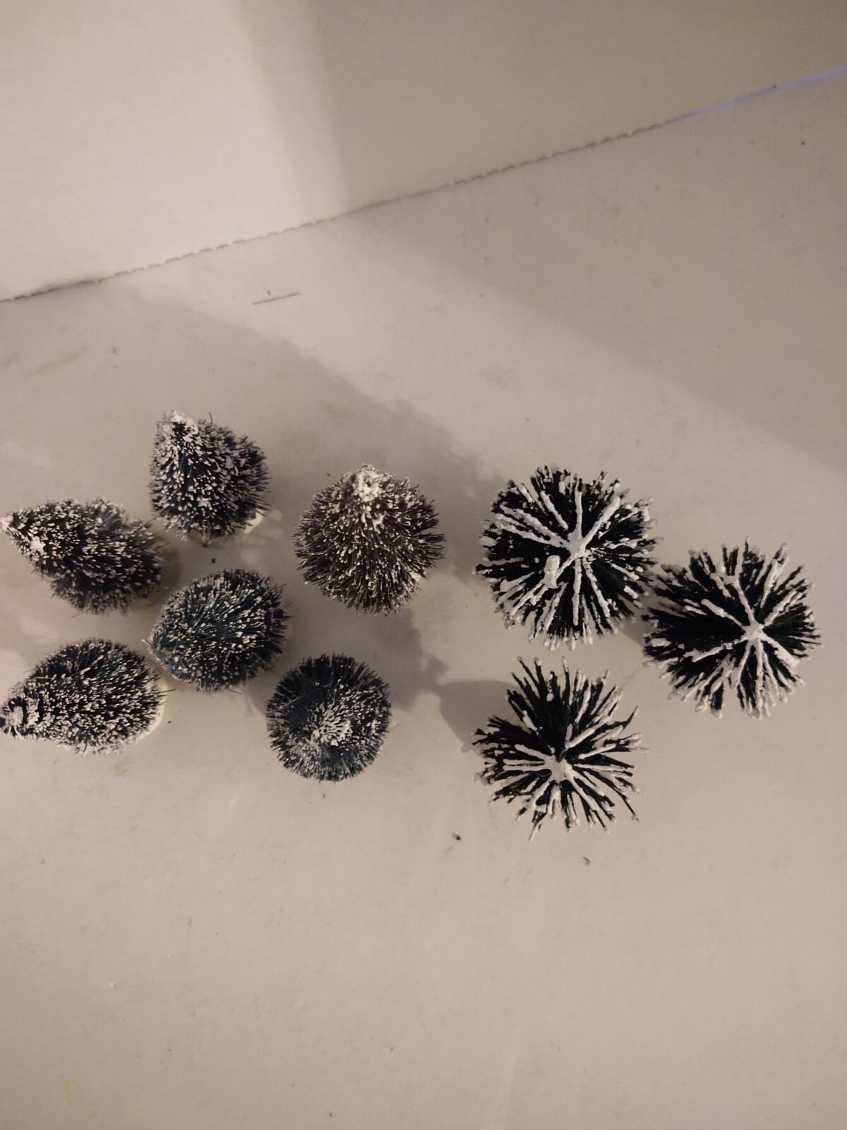 Set of 9 Lemax Flocked Christmas Bottle Brush Trees Holiday 1 3/4" - 2 3/4" Condition: Pre-Owned