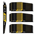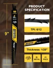 Excellent Cutting Performance: Bi-Metal 6/12T Reciprocating Saw demolition Blades are specifically designed for maximum performance in nail-embedded wood applications. when we trim wood containing nails such as abandoned fences, no longer have to worry about nail damage to the saw blade or frequently replace different kinds of reciprocating saw blades. Fast &Accurate Cutting : Designed with variable teeth, provides faster cuts with less vibration, Ensures optimal cutting performance on materials of varying hardness and thickness. High Strength Thickened Saw Blades: Unlike other bi-metal saw blades, constructed by high-density bi-metal with extra 8% cobalt, and 1.27mm thickness is thicker than many saw blades on the market, which means it has longer life span. More importantly, this will effectively reduce the risk of sudden blade breakage during cutting. Versatile Applications: Ideal for a wide range of materials including wood (with nails), common lumber, PE/PVC, OBS plywood, nails, screws, tires, wooden fences, plastic, and metal demolition, making them indispensable in various everyday tasks. Universal Shank Compatibility: Compatible with major reciprocating saw brands such as Bosch, Dewalt, Milwaukee Sawzall, SKIL, Makita, Black & Decker, Ryobi, Porter Cable, Hitachi, Flex, Hilti, and more, ensuring versatility and ease of use across different tools.