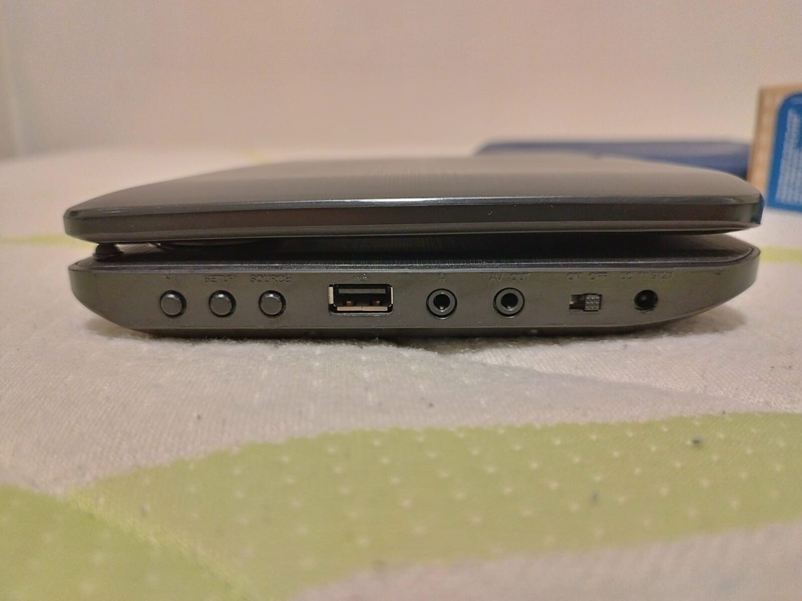portable dvd player with rechargeable battery ok. brand 9 inch screen usb impot remote control and feture of rotate screen 180 degrees the is original dvd bought from saturn,this product can read only original dvd's region 2 The viewing quality and colors are very impressive, great for students and people who want to watch series and movies anywhere the package including: x1 portable dvd player x1 charger x1 remote control x1 original box