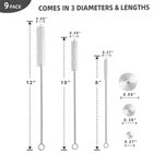 9 Pack (3-Size) Drinking Straw Cleaning Brushes Set Extra Long Pipe Tube Cleaner MULTIPLE SIZE – With this set of 9 straws you will get a straw with a diameter of 6 mm, 9 mm and 12 mm, and nylon bristle length of 8 inches, 10 inches and 12 inches. Great for clean your straws on Tumbler, Sippy Cup, Baby Bottles, Tervis, CamelBak, Hydroflasks, Yeti, Starbucks Cup and others. EASY TO USE – Simply insert it into the pipe, rotate it, remove and wash it. With the long, soft but durable bristles, it can be used to clean each size of pipe you have and does not scratch the inside of straws. Moreover, it doesn’t leave a lot of fuzz behind in the pipe like pipe cleaners do which you need to take the trouble to get rid of it. DURABILITY & MULTIFUNCTIONAL – Use our durable straw brush that is very flexible but will not break easily which is much stronger than some inferior and fragile straw brushes. Meanwhile, this brush also can be used to clean Pipe, Narrow Tube, Hookah, Coffee Pot, Sink Drain, Hummingbird Feeder, Weed Smoking Bong and other hard to access corners. HOW IT’S MADE – These straw cleaning brushes are made of food grade stainless steel, while bringing you durability and versatility. The bristles are made of nylon which is both resistant, and easy to clean. Get around any surface or maneuver any depth. DISHWASHER SAFE – These pipe cleaners are easy to clean after use since they can easily throw it in the top rack of the dishwasher, and this won't affect the brushes' effectiveness and functionality. SHIPPING: We offer FREE shipping on all orders! We ship within Three business days of payment, usually sooner. We use a selection of shipping services such as UPS, FedEx, USPS etc. We only ship to the lower 48 states, no APO/FPO addresses or PO Boxes allowed. Local pickups and combined shipping options are not provided at this time. PAYMENT: We accept payment by any of the following methods: PayPal Please pay as soon as possible after winning an auction, as that will allow us to post your item to you sooner! FEEDBACK: Customer satisfaction is very important to us. If you have any problem with your order, please contact us and we will do our best to make you satisfied. Thank you for shopping with us!