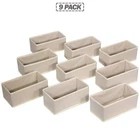 1, Classify Underwear, Bras, Socks, Ties, Scarves, Shirt, Baby T-shirt, Underpants, Undergarment, accessories etc. Easy to find which one you want to wear and never need to ransack all of your clothes. 2, These storage containers drawers Includes 9 medium rectangular organizer bins that can hold a variety of personal items. These stackable baskets dividers fit for men women male baby children kids girls boys. 3, The Collapsible cloths Storage Boxes Dresser Drawer organization provides lightweight solution and easy carrying to many personal storage needs. These soft adjustable compartments can be used for closet, bedroom, shelf, bathroom, wardrobe, chest of drawers, under bed storage, desk, bookshelf, nursery, office. 4, Made from non-woven fabric and Cardboard. Dresser drawer organizer measurements are: 11" X 5.5" X 4.7". Color: Beige. Set of 9. 5, SPACE SAVING YOUR CABINET: Can be folded flat to save space when not in use. Multi-Purpose, suitable for baby clothes, underwear, bras, socks, makeup, belt, lingerie, panty, clothing, diapers, toys, crafts. Classify Underwear, Bras, Socks, Ties, Scarves, Shirt, Baby T-shirt, Underpants, Undergarment, accessories etc. Easy to find which one you want to wear and never need to ransack all of your clothes. These storage containers drawers Includes 9 medium rectangular organizer bins that can hold a variety of personal items. These stackable baskets dividers fit for men women male baby children kids girls boys. The Collapsible cloths Storage Boxes Dresser Drawer organization provides lightweight solution and easy carrying to many personal storage needs. These soft adjustable compartments can be used for closet, bedroom, shelf, bathroom, wardrobe, chest of drawers, under bed storage, desk, bookshelf, nursery, office. Made from non-woven fabric and Cardboard. Dresser drawer organizer measurements are: 11" X 5.5" X 4.7". Color: Beige. Set of 9. SPACE SAVING YOUR CABINET: Can be folded flat to save space when not in use. Multi-Purpose, suitable for baby clothes, underwear, bras, socks, makeup, belt, lingerie, panty, clothing, diapers, toys, crafts.