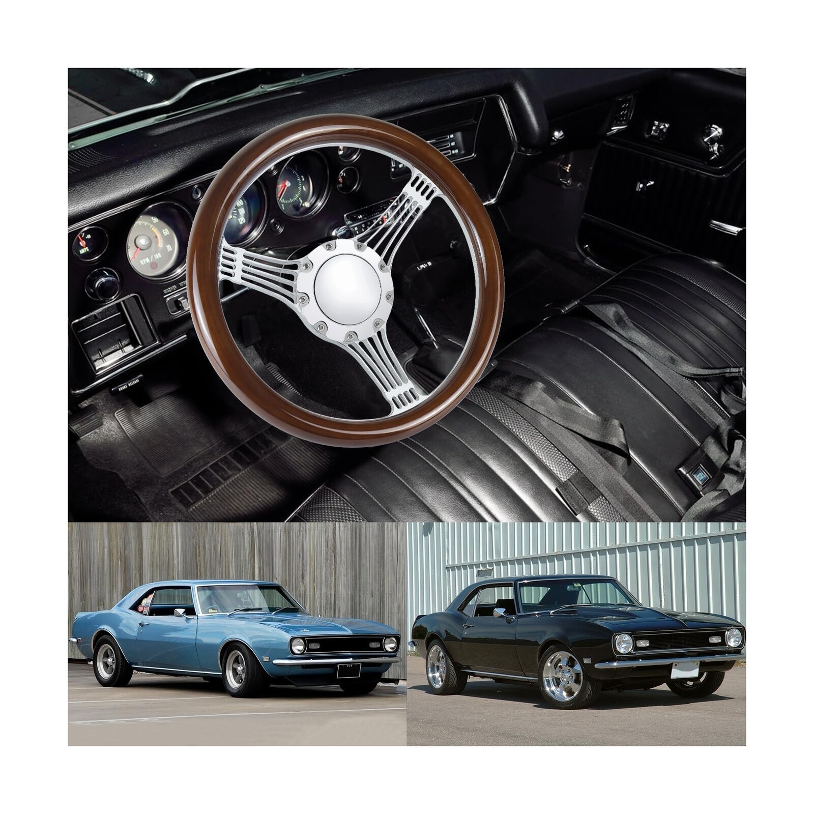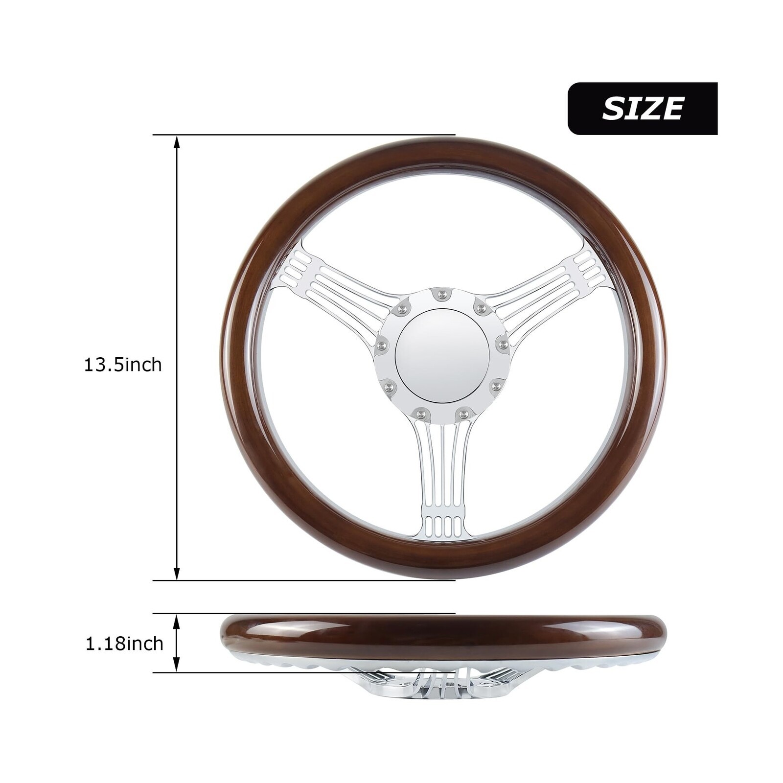 9 bolt disc shaped steering wheel, 14 inch wooden steering wheel, suitable for most nine hole car wooden steering wheels Description Features: Steering Wheel Material: This steering wheel grip is made of mahogany, with a delicate feel and comfortable grip, and the spokes are made of aluminium alloy, with high hardness and corrosion resistance. Fashionable design: 9 hole steering wheel design is simple and generous arc smooth and the back has a concave-convex design and finger compatibility, can have a better driving experience. Steering Wheel Scope of Application: The 9-bolt wooden butterfly steering wheel is suitable for 1967-94 cars and other types of cars on the market. Easy Installation: Installation of this steering wheel requires an applicable adapter Product Details: Color: silver Brand: QYMOPAY Fit Type: Universal Fit Item Diameter: 14 Inches Grip Size: 14 inches Number of Spokes: 3 Vehicle Service Type: Passenger Car Color: silver Brand: QYMOPAY Fit Type: Universal Fit Item Diameter: 14 Inches Grip Size: 14 inches Number of Spokes: 3 Vehicle Service Type: Passenger Car Manufacturer: QYMOPAY Item Weight: 3.93 pounds Item model number: JLL-90 Manufacturer Part Number: JLL-901W Date First Available: July 24, 2024 Delivery We Do Not Ship Outside of the Continental US. Return Policy All items qualify for returns within 30 days of receipt. Buyer is responsible for return shipping on any item that is not damaged. Feedback We take our reputation seriously, we buy and sell online, so we understand the value of trust. If you are unsatisfied with your order, please contact us and we will work with you to resolve it to your satisfaction.