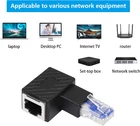 The 90-degree RJ45 network adapter is used to connect network devices more flexibly. It can be used to connect network ports in narrow spaces, such as computer cases behind furniture or behind TVs. Effectively replace the network terminal interface, due to long term continuous plugging and unplugging, causing major damage Goldplated RJ45 connector higher sensitivity better stability in line with Cat5e Cat6 8P8C wiring standards RJ45 network card port is very suitable for connecting existing Ethernet to router or network video transmission equipment Widely used in: PC terminal, computer service, network TV, router, network switch, network media player conversion application Left Angle angle male to female Cat5e / Cat6 Ethernet adapter. Specifications: 1: 90-degree Up-angle design, suitable for narrow spaces, the back and corners of TV sets and computer cases,Falling, walls, etc. 2: RJ45 / 8P8C male to RJ45 / 8P8C female 3: RJ45 connector contact: gold-plated 4: The number of mating cycles is greater than or equal to 1000 5: High quality, PVC all-inclusive design, sturdy and durable, non-corrosive, and protect the internal circuit modules. 6: Stable anti-interference ability, isolation of external electromagnetic interference, high-speed transmission. 7: Compatibility: Cat6 / Cat5e / Cat5 standard RJ45 8P8C power cord 8: Widely used in: PC terminal, calculator service, network TV, router, network switch,Applicable to player conversion of network media Product packaging: 90 degree Left angle RJ45 Ethernet adapter x2. Important note! ! When using RJ45 ports side by side, please check the size of the connector to ensure that there is enough clearance