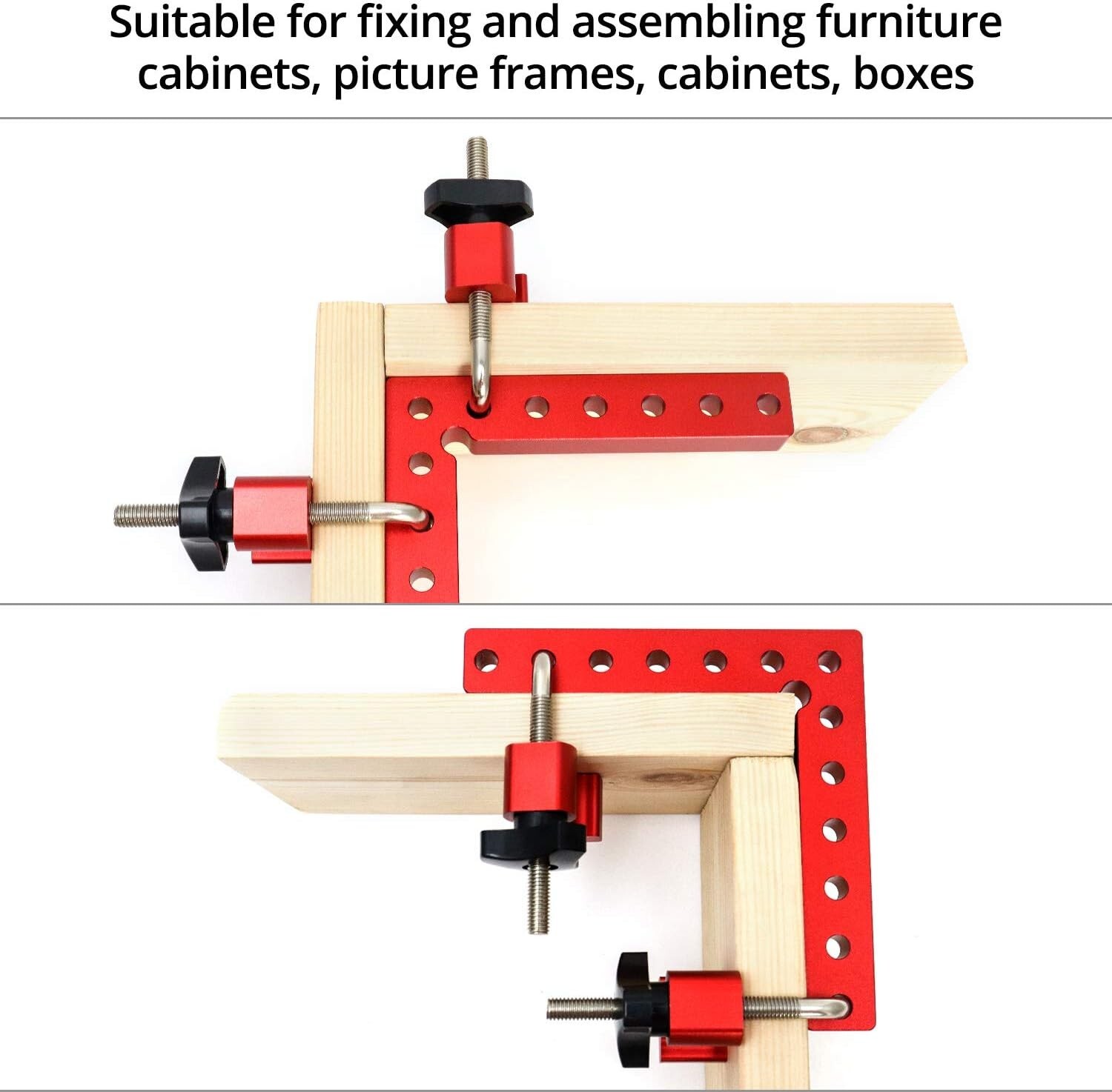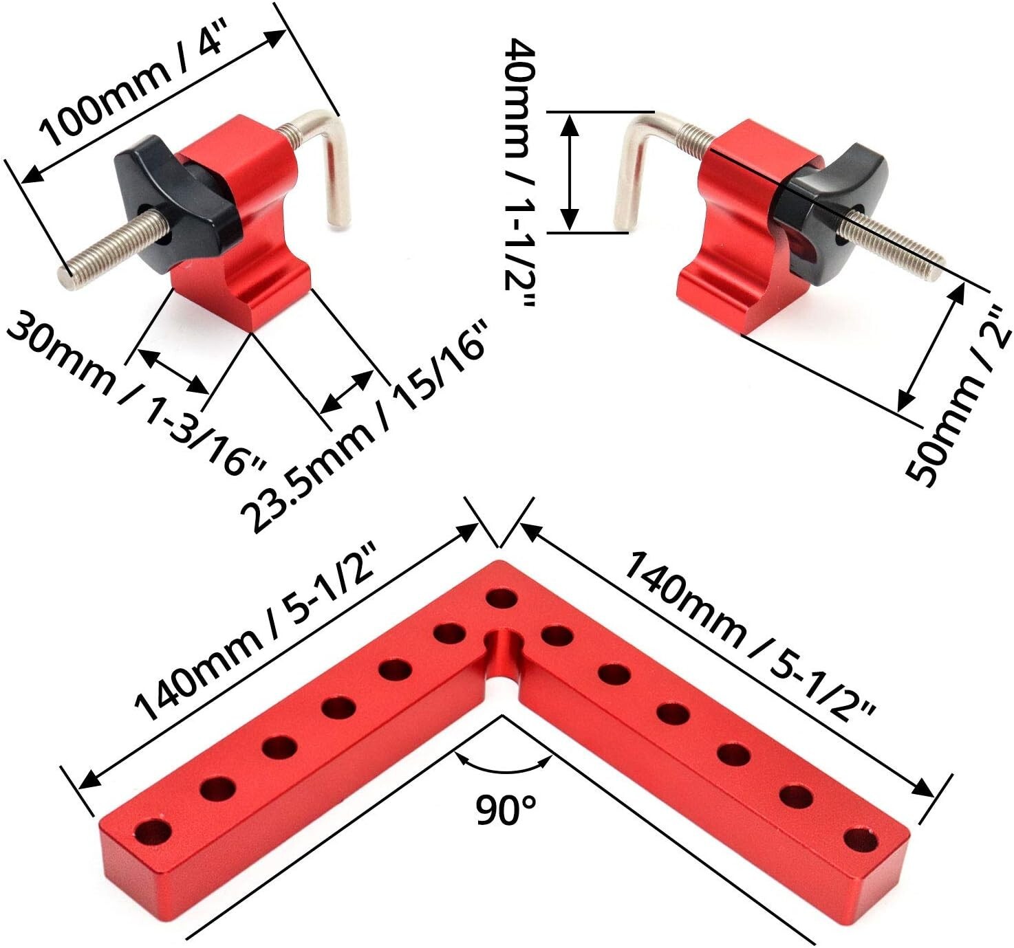100% High Quality: Made of high quality aluminum alloy and stainless steel clamp, anti-rust, anti-corrosion, durable for long term service, 100% high quality and brand new. Specification: 2 Pack, Size: 5.5" x 5.5", this clamps fit for the wood board thickness from 7/16" to 1- 9/16", and 90 degree angle can offer strong balance for convenient use. Application: This carpentry right angle jig set can be used to fix and assemble furniture cabinets, picture frames, cabinets, boxes. Suitable for squaring up shelf cabinets and keep a square when assembling cabinets, frames etc. Easy Installation: Put the square on the corner of the two raw materials that need to be flattened and fixed with a set of clamps. With beveled edges, it can be easy to work and not damage the fragile cutting edges.