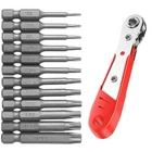 Product D escription 12PCS Torx Screwdriver Bit S et 50mm + 1PCS Torx S crewdriver R atchet Product Characteristics High Q uality I ndustrial G rade M aterials: The Torx screwdriver bit set is made of high-quality S2 alloy steel with a special heat treatment process to increase the torque and full hardness of the bit, and it has good wear resistance and is more durable than regular Torx screwdriver bits. High P recision M achining T echnology: The product adopts CNC precision machining technology to ensure the accuracy of the product, so that the drill can withstand the instantaneous impact of large torque pneumatic tools, which greatly improves the service life of the product itself. Magnetic: The magnetic Torx screwdriver drill set can quickly and easily adsorb screws, greatly improving your work efficiency. Repeated use does not diminish the magnetic force. Suitable F or A V ariety O f P ower T ools: The 1/4" hexagon handle allows it to accommodate a wide range of power tools, allowing you to quickly change chucks. Suitable for electric drill, air drill, electric screwdriver, manual screwdriver and so on. A W ide R ange O f U se S cenarios: It can be widely used in automobile, home, industrial and other maintenance, and can also be used in other screw drives. Mechanical P rinciple D esign: Strong torque, high torque, after contact with the screw head, the impact reaction force generated by the impact screwdriver is absorbed by the torque part, effectively preventing the damage of the tool head. Straight and concentric, tight bite. 36 F oot R atchet F orward A nd R everse S crewdriver: The screwdriver gear is made of high-quality carbon steel, and the handle is made of ABS material. It can be used in a small space, and can be connected to the screwdriver bit or the sleeve. The interface is 1/4" hexagonal head (6.35mm), which meets most of the screwdriver bits and sleeves on the market. Built-in strong magnetic, adsorption is easier. The screwdriver has a ratchet switch design, the switch can adjust the forward and reverse rotation, and the 36 foot ratchet makes the operation easier. Product Specification Screwdriver B it: Status: 100% Brand New Material: S2 A lloy S teel Quantity: 12PCS Shank T ype: 6.35mm/ 1/4" H ex S hank Length: 1.97"/50mm Tool H ead S pecifications: T5, T6, T7, T8, T9, T10, T15, T20, T25, T27, T30, T40 36 F oot R atchet F orward A nd R everse S crewdriver: Status: 100% Brand New Gear M aterial: C arbon S teel Handle M aterial: ABS Package Included 12 PCS × 50mm Torx Screwdriver B it 1 PCS × 36 Ratchet Handle Attention P lease 1. Please allow manual measurement error of 1-5mm. Make sure you don't mind before you buy. 2. Due to lighting effects, brightness contrast Settings of the display, etc., there may be some slight differences in the hue of the picture and the actual item, please make sure you don't mind.