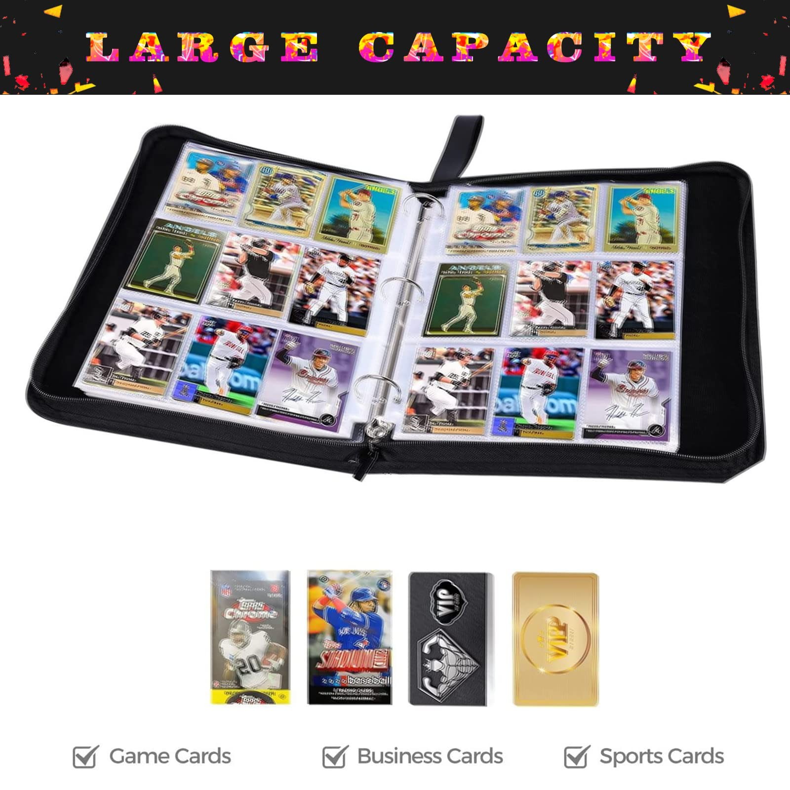 Baseball Card Binder with 900 Pockets 50 Sleeves 3-Ring Zippered Storage
