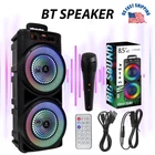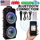 9000W Portable Bluetooth Speaker Sub woofer Heavy Bass Sound Party System w/ Mic Description: Dual Speakers & Powerful Bass: Highly efficient woofer produces deep and low bass while the mids and highs remain loud and clear even when the volume is cranked up. Smooth Bluetooth Connection: Allows you to stream your favorite music straight from your smartphone, iPod, tablet or any other suitable blue-toothe device within 10M/32 feet. Just move about and keep the music going with no cable and no hassle. Additional Audio Sources: when Bluetooth device isn’t available, you can pop into a flash disk or micro SD card, or connect to your 3.5mm audio device like MP3/MP4/5 player, etc. to play your favorite tunes. Portable & Rechargeable Designed: Built-in 2400mAh rechargeable battery offers up to more than 3-4 hours of playtime, with heavy-duty top handle, it's easy to take this speaker anywhere you go and throw up a party. Specification: Bluet. version: 5.0 Audio Input: USB/TF/AUX/FM/BT/MIC Built-in Battery: 18650 li-ion battery Battery capacity:2400mAh Charging time: 2-3 hours Play time: 3-4 hours (fully charged) Input Voltage: AC 100-240V 50/60Hz Charging interface: Micro USB. Speacker Size: 59.5*24.7*20cm/23.4 *9.72*7.8 inches Color: Black Material: molded PP plastic cabinet USE INSTRUCTION: 1. Connect the marked power cable according to the connection instructions on the rear panel. 2. Make sure the voltage is correct. insert the power cable and turn on the power switch button 3. Adjust the function keys to achieve the best sound effect you are satisfied with Product List: 1 * Speaker 1 * Remote control 1 * 2 meter cable microphone 1 * Power cable 1 * User manual Payment Delivery details Return Contact us Feedback Payment We only accept the paypal payment methods. All major credit cards are accepted through secure payment processor PayPal.(* If you use e-check on PayPal, delivery may take longer, as we will hold your order until your e-check clear) Delivery details Item will be shipped within 2 business day after confirmed payment. (Not including weekend or public holidays) Please verify your address during checkout. We are not responsible for any wrong or undeliverable addresses. All items will be checked strictly before shipping and it will be shipped to your PayPal address. Estimated delivery time is 1-5 working days (Not including weekend or public holidays) Delivery times may vary particularly during peak periods or unexpected weather conditions. In event of a very unlikely slight delay, your patience would be highly appreciated. We do not provide pick up or local collection service so far. Return We accpet return within 30 Days of dispatch. For exchange buyer MUST return the defective item for 1 to 1 exchange, return cost due to buyer. For free shipping means we paid the shipping fee on your behalf, that fee will be deducted. In case return cause by wrong buy, return postage will be at buyer side also. Please contact us immediately about any your return before shipping back the Once the item has shipped the regular return policy applies. Notifying us ahead of time will help us to ensure that your return is dealt with promptly upon arrival. Contact us We guarantee 100% Buyer Satisfaction. We are increasingly expanding international markets based on high quality products, excellent service, reasonable priceboas and timely delivery. Please contact us at any time for more information.We work hard to make sure EVERY CUSTOMER 100% approvingly. Feedback Very appreciated for your support. I hope you are happy with your purchase. We maintain high standards of excellence and strive for 100% customer satisfaction! Feedback is very important to us. We request that you contact us immediately BEFORE you give us or feedback, so that we can satisfactorily address your concerns. If you have any problem, please feel free to contact us via ebay message, we will reply your email within 24 hours (except weekends and holidays). We will do our best to solve your problem as soon as possible. We appreciate your continued patience and willingness to work with us. Thank you for choosing us and have a great day!