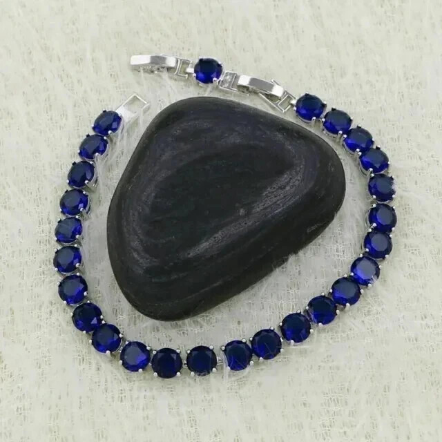 Gemstone Clarity Grade: Eye Clean Certification: NA Base Metal: Silver Main Stone: Sapphire Number of Gemstones: As per image Cut Grade: Excellent Colored Diamond Intensity: Fancy Wholesale: Yes Brand: Jewelryforyou-7 Diamond Color Grade: D Customized: Yes Number of Diamonds: As per image Main Stone Color: Blue Type: Bracelet Sizable: Yes Metal: Sterling Silver Setting Style: Prong Shape: Round Closure: As per image Seller Warranty: Yes Seller Notes: “@+++Big Sale Off Hurry up Offer for Limited Time+++@” Main Stone Creation: Lab-Created Personalize: Yes Style: Tennis Diamond Clarity Grade: Very, Very Slightly Included (VVS1) Secondary Stone: Diamond Theme: Beauty Occasion: Anniversary, Birthday, Christmas, Engagement, Valentine's Day, Wedding Material: Gemstone, Stone, Metal Features: Engraved Color: White Main Stone Shape: Round Metal Purity: 925 Main Stone Treatment: Not Enhanced Item Length: 7.5 in Total Carat Weight: 9 Carat Chain Type: Round Link