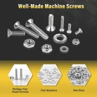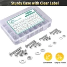 Durable Bolts and Nuts Kit: All screws, washers and nuts are made of high-quality 304 stainless steel with a corrosion-resistant finish, ensuring long-lasting performance even in harsh environments. High strength property ensures they will not bend or deform easily Super Handy Assortment: This set includes various #4-40, 6-32, 8-32, 10-24 screws with nuts and flat washers that a regular household needs. Compared to the time it takes to go to a hardware store and the cost of buying single fastening, this is a time and money saver Convenient Storage Box: The nut and bolt assortment comes in a sturdy and impact resistant storage box with dividers to keep the nuts and bolts well organized and easy to access. The compact design makes it convenient to store in your toolbox, garage, or workshop Easy Identification Label: The case is labeled with the sizes, types and quantities of nuts and bolts, making it easy to find the right one for your project without having to sort through a jumbled pile. The chart can greatly improve work efficiency for repair or other DIY Multiple Application Scenarios: The set screws can be widely used in the maintenance and installation of various precision machinery, instruments, electronic products and household appliances. The most common applications are furniture and vehicle maintenance