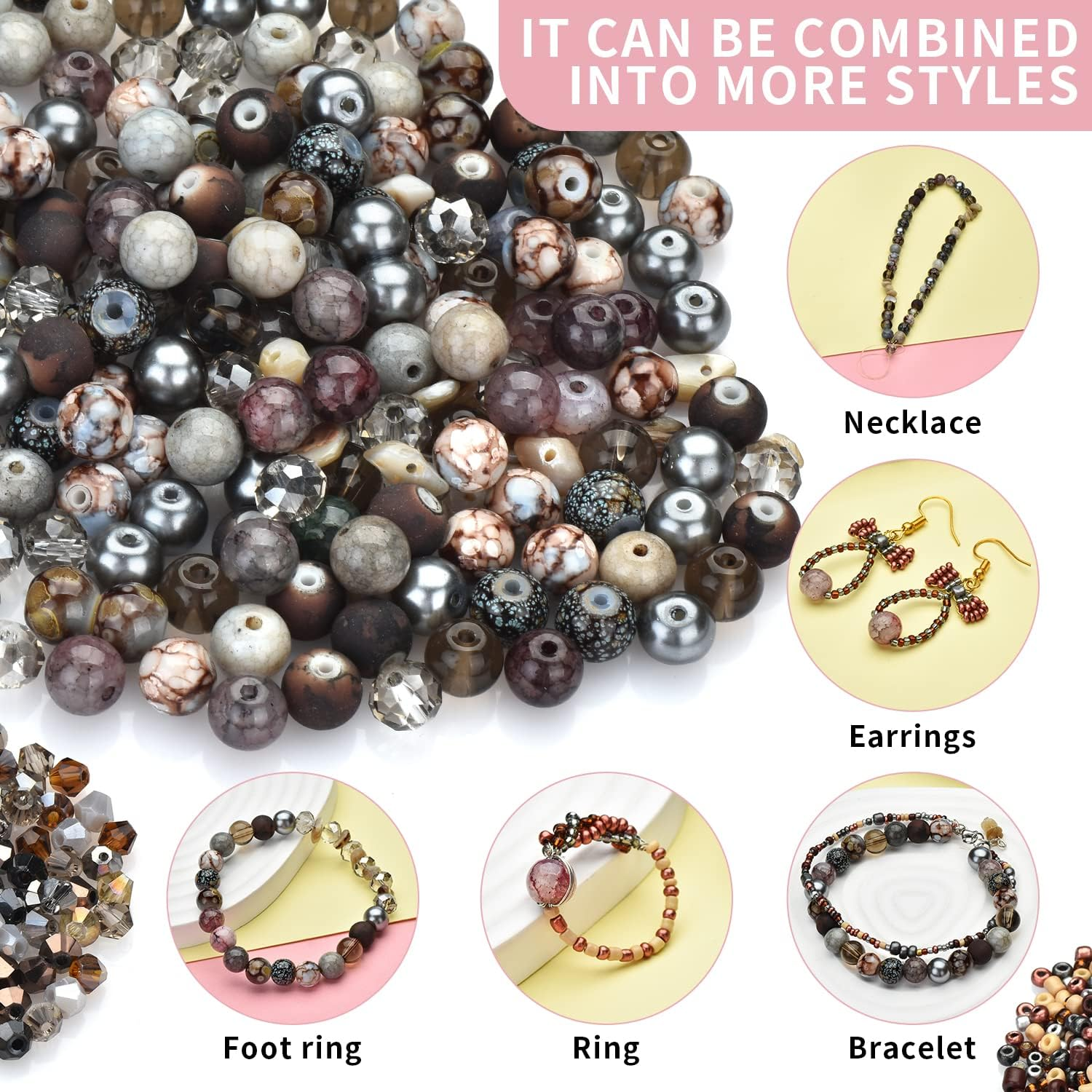 Great jewelry making supplies: Enrich your jewelry collection with this new beads set, which provide assorted beads for your beads design. This crystal beads for jewelry making include 200pcs 8mm assorted beads, 200pcs 4mm bicone crystal beads, 500pcs 3-4mm seed beads, can meet all your DIY needs. Assorted Mixed Grey Crystal Beads: Including 8mm round beads, pearl beads, rondelle beads, crackle beads, glass pony beads, and rock beads to complete this bead kit. Safe and High Quality Material: Not the cheap acrylic beads, these beads mixed with glass beads, jade beads, gemstone beads, crystals and healing stones-all high quality beads, various shaped beads with smooth, shiny surfaces, excellent polishing. This bracelet making kit has good stability, and can maintain luster for a long time. Wide Application: Perfect for beading, jewelry making, bracelet earring necklace making supplies, phone charm, charm bracelets, pendants, waist beads kit, hairpin or hair braids, fashionable shoes decor and party decoration. Guarantee: All beads have been checked for multiple times and packaged well before shipping. You can refund or replace if you are not satisfied with them. If you have any confuse about product, plz feel free to contact us, we will reply and slove problem asap. Product Description Crystal Round Color: Ash Grey Spacer Beads Fit: Faceted Components/Wedding Dress Parts/Decorative Chandeliers/Pendants Crystal Beads Use: Suitable for decorations, ornaments, clothing accessories, wedding crafts, jewelry, bead curtains making and so on. DIY Jewelry Making design: Earring Making Kit, Friendship Bracelet Making kits, Waist Beads Making, Hair beads making, Bracelet beads, Art for crafts, Great gifts for friends. Package includes: √8mm 80pcs round patterned beads, √8mm 20pcs imitation gemstone beads, √8mm 20pcs transparent beads, √8mm 20pcs crackle imitation jade beads, √8mm 20pcs pearl beads, √6x8mm 20pcs rondelle beads, √20pcs gravel beads, √200pcs 4mm bicone crystal beads, √500pcs 2-4mm seed beads,